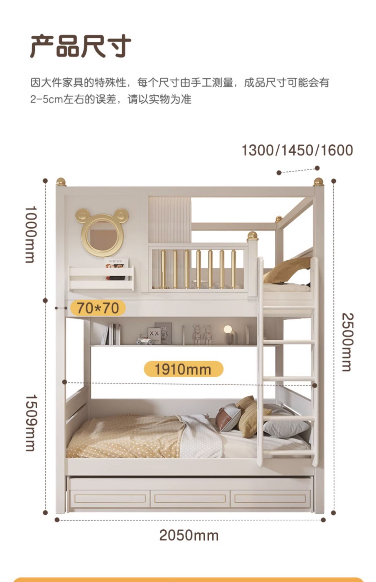 ![]() | Parallel-same-width bed + upper bunk curtains + double drawer/dragging bed, straight ladder/side ladder optional | 1350mm*1900mm+ only high and low beds | ¥5959.5 / ≈ 72 489 ₽ | 200 | 5873423151240 | |