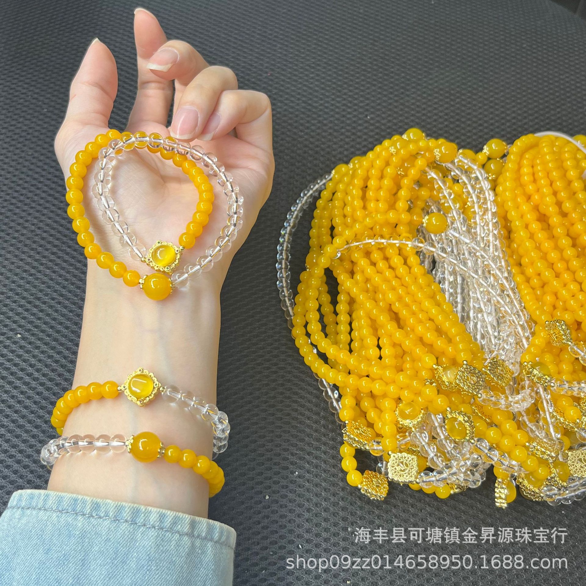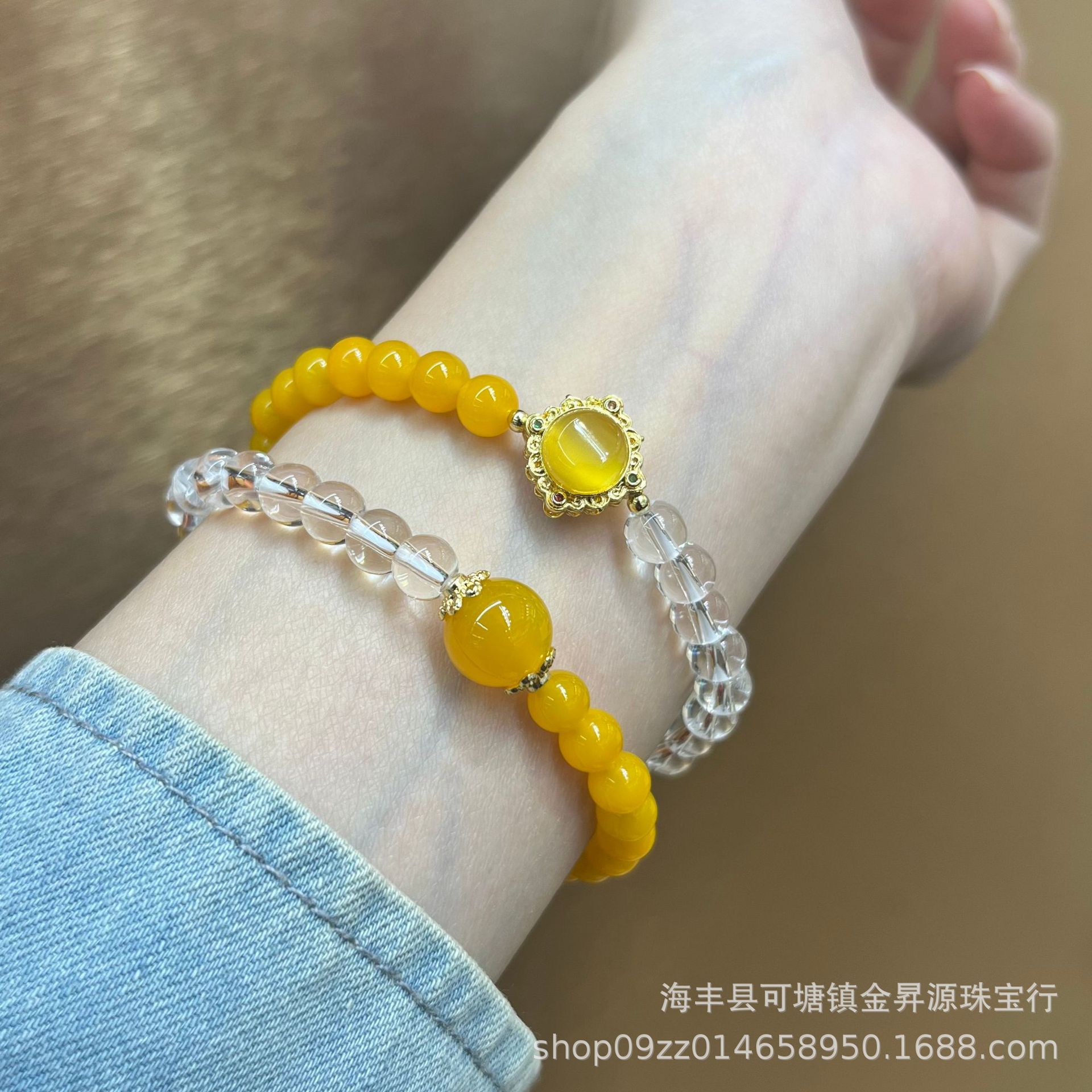 天然黄玛瑙鸡油黄手链柠檬黄白水晶双圈手串新中式轻奢直播款批发 批发量越大价格越低,可供直播间长期合作,欢迎来电私聊