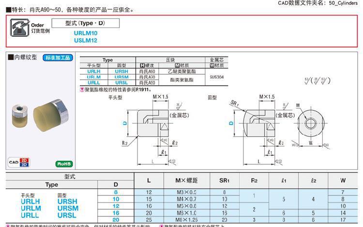 Полиуретановая брикетная сумка с внутренней резьбой URLH URLM URLL PSHLH URSH URSM URSL RSHLH