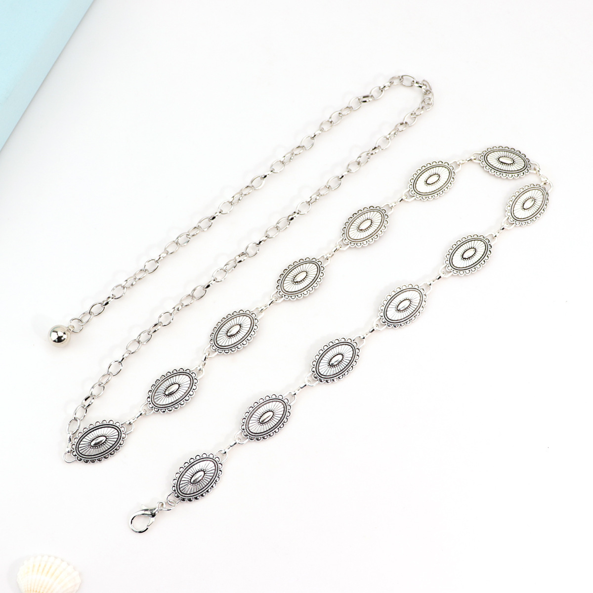 Металлическая винтажная серебряная цепочка для талии с тиснением в виде ромашки серебряная поясная цепочка женская подходящая к юбке декоративная цепочка для талии