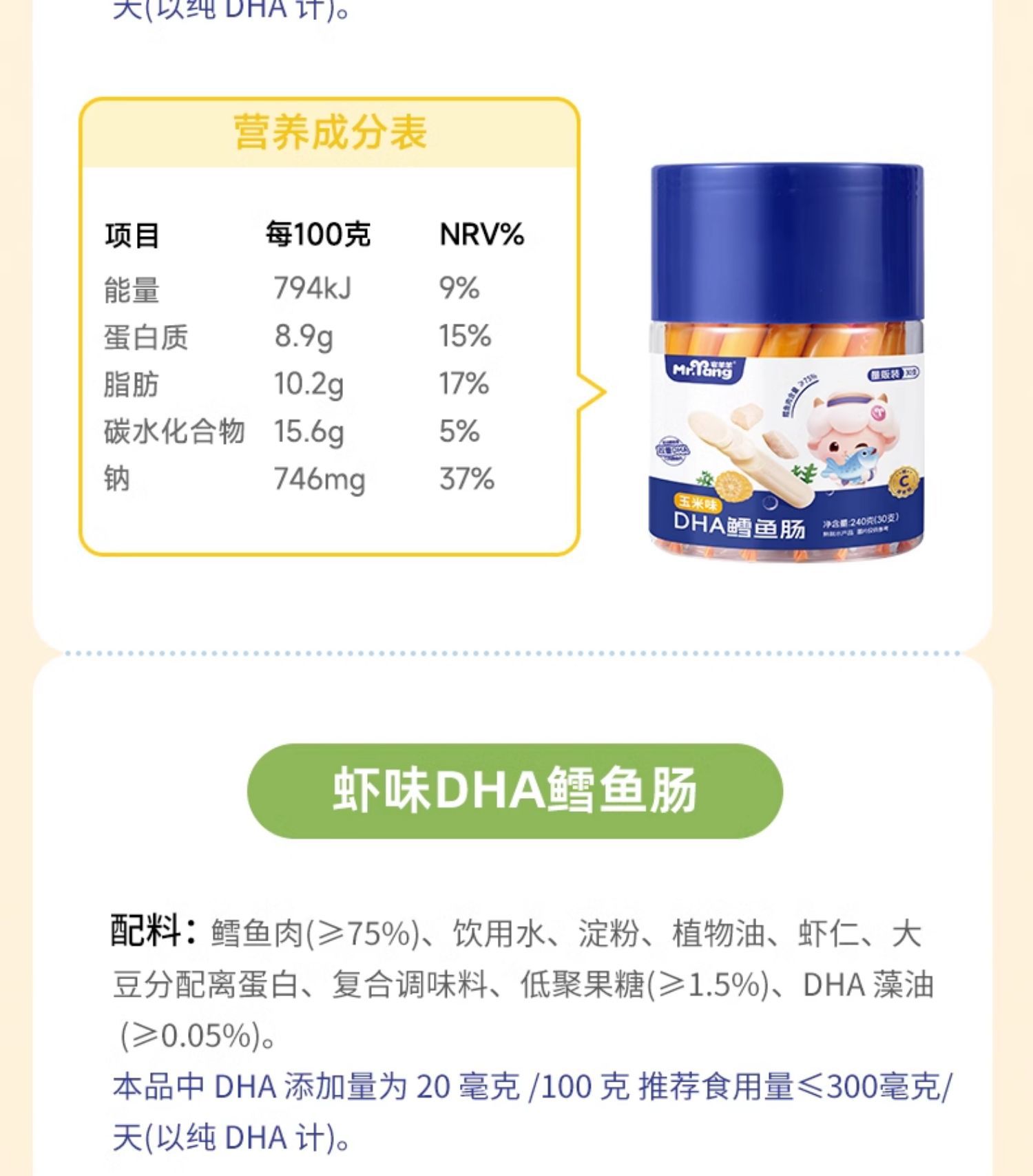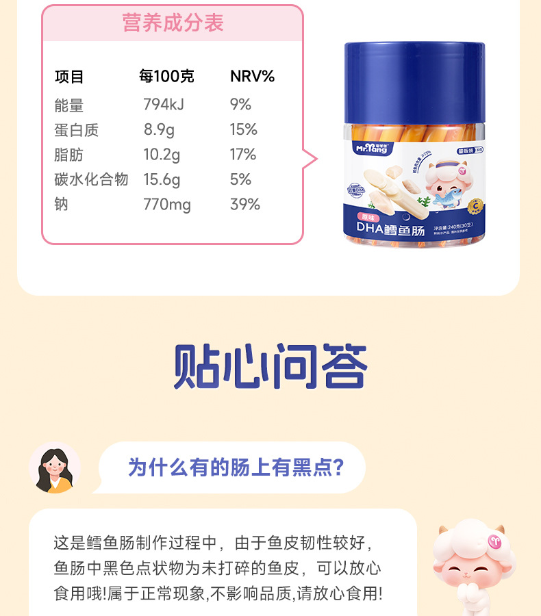 Колбаса из трески Home sheep sheep 76%, детские закуски, добавление DHA для детского питания