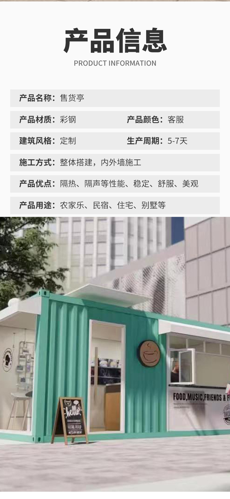 Мобильный киоск в живописной зоне, контейнерный киоск для продаж