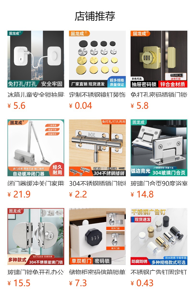 ![]() | New latch-180 degrees 90 degrees-[silver = ordinary model = with screws + glue | ¥9.8 / ≈ 119 ₽ | 100000 | 5877241571981 | |