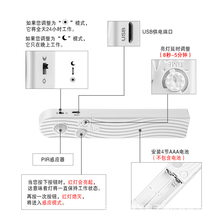 Умный инфракрасный датчик человеческого тела 5V с RGB контроллером, диммируемый аккумуляторный блок на 4 элемента 3A