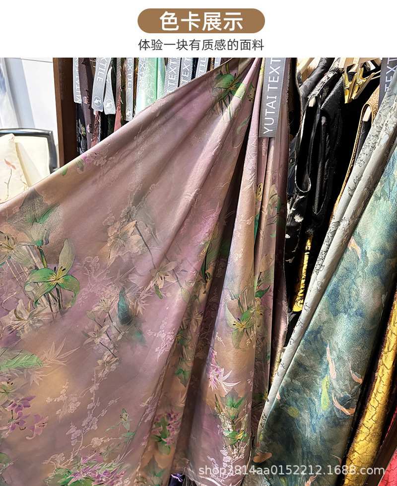 Новая ткань 35 мм, жаккард, узор лилии, 140 см, осенний чонгсам