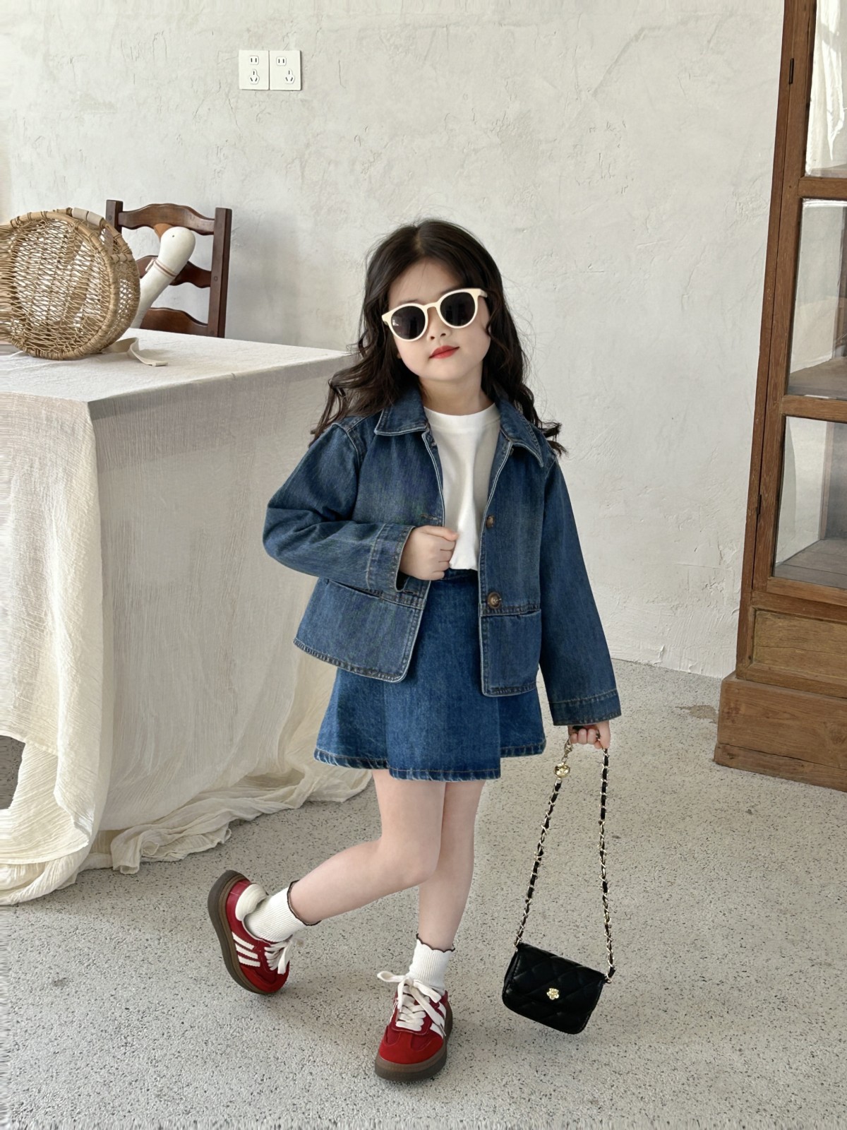 Весеннее пальто 2025 для девочек, корейский стиль, джинсовая куртка, универсальная юбка
