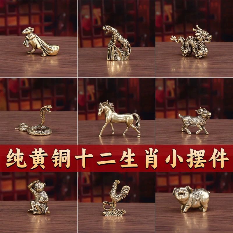 十二生肖工艺品创意小摆件吉祥物全套纯铜茶宠家居饰品桌面手把件