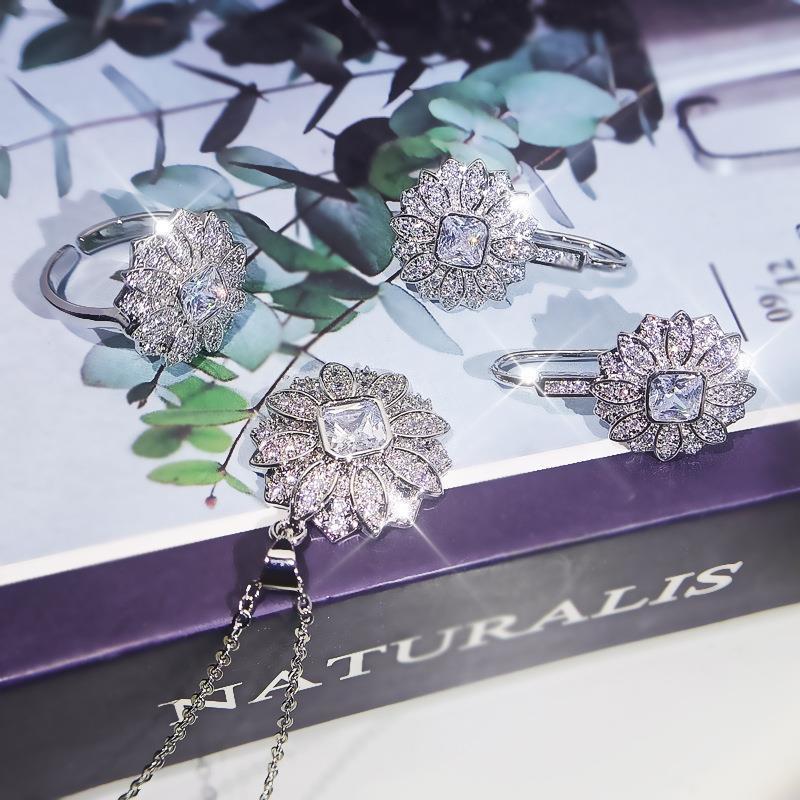 Аутентичный кулон из серебра S925 с полными бриллиантами, серьги и браслет, три настоящих изделия