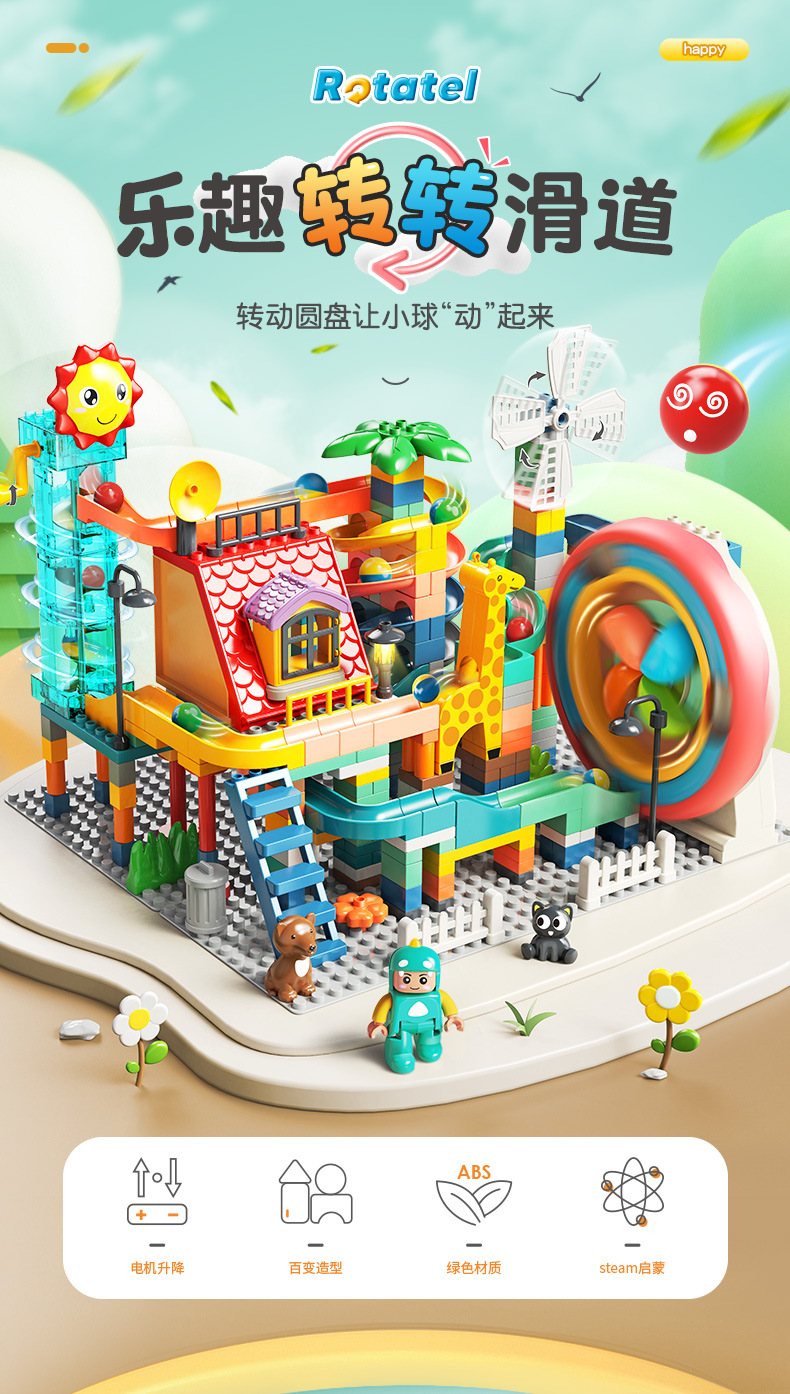 Большие строительные блоки Feile, 5 электрических шаров, 4 детские образовательные игрушки для мальчиков