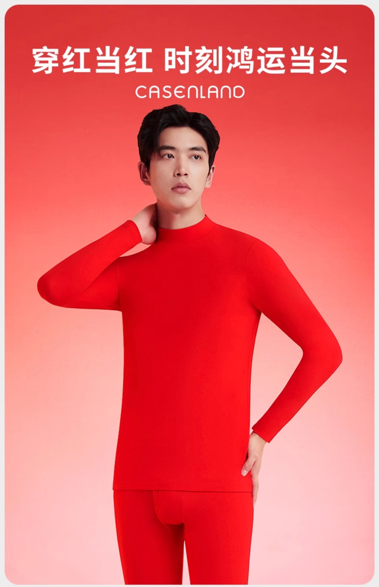 Мужской Зодиакальный Год Термальные Интимные Набор Красный Зодиакальный Год Большой Размер Одежда Чистый Хлопок Полу-Воротник Осеннее Одежда и Долгие Брюки для Мужчин