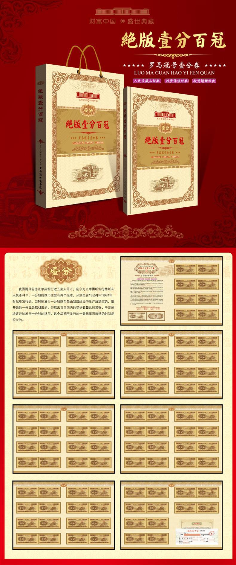 产品名称:第二套人民币1分同冠号100张