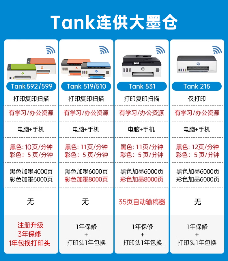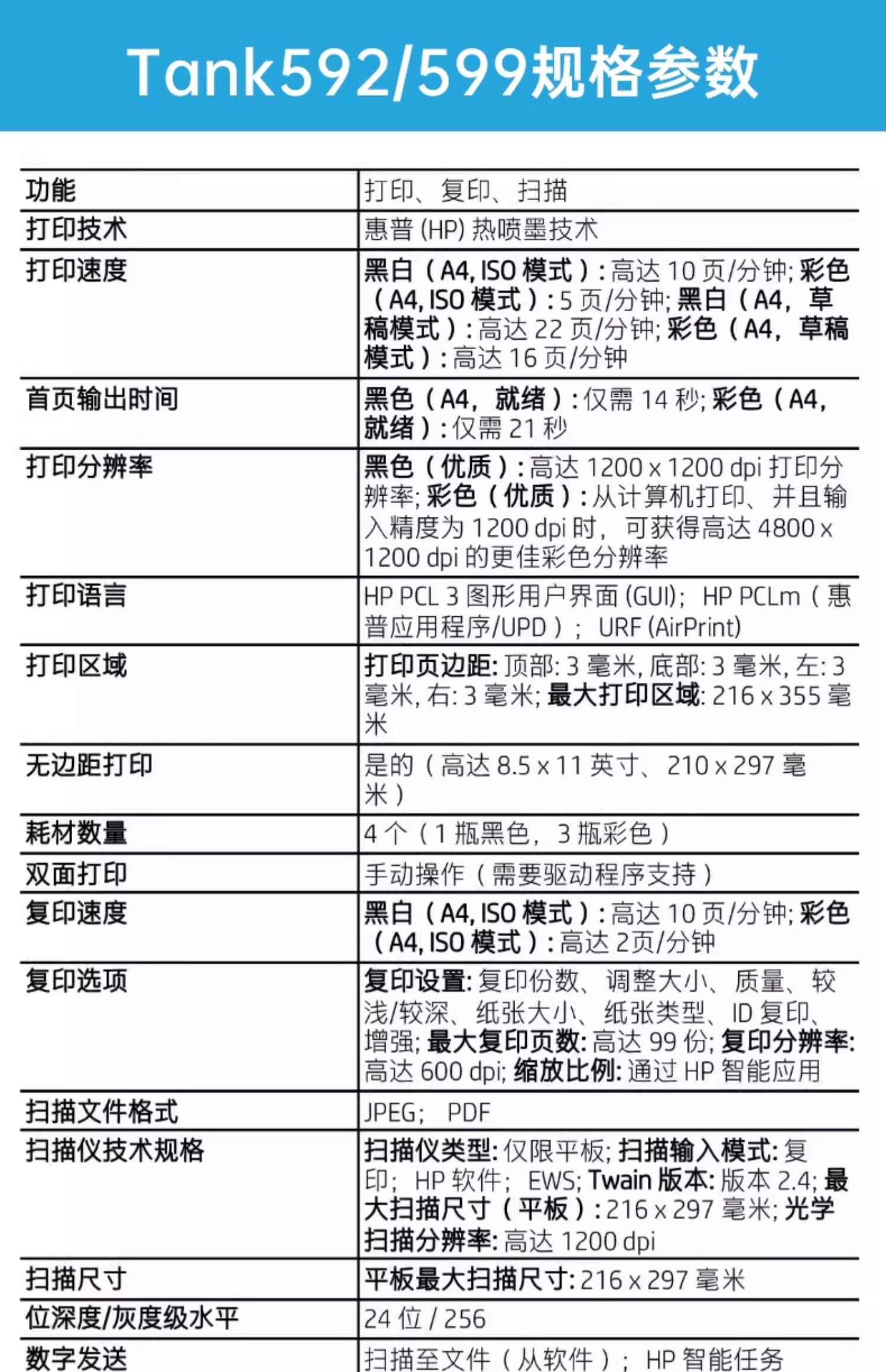 Принтер HP Hewlett-Packard Tank592 цветной с подачей чернил копир и сканер все-в-одном для дома малый подключаемый