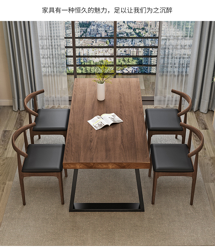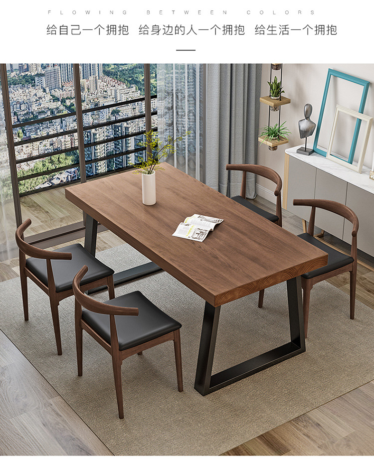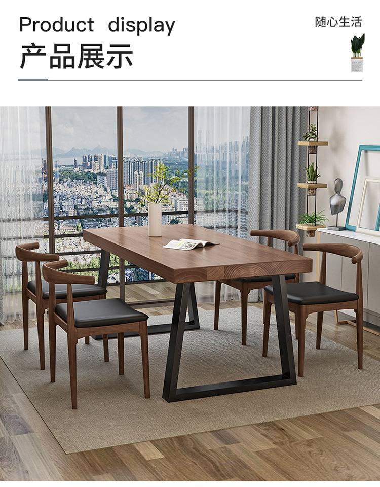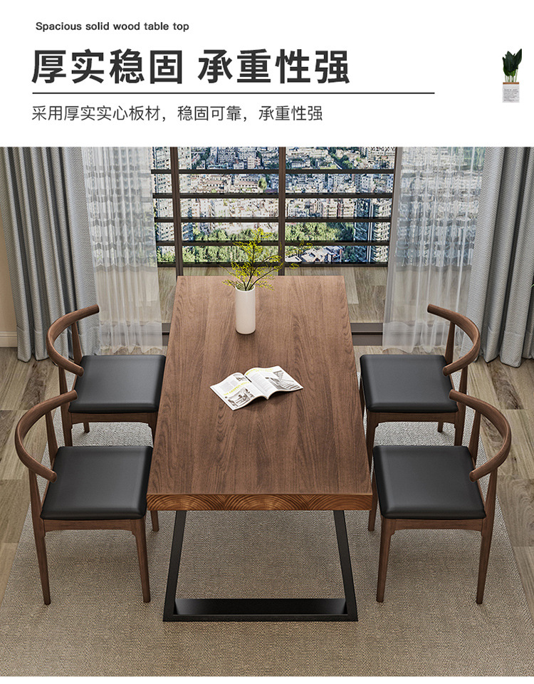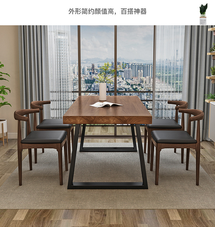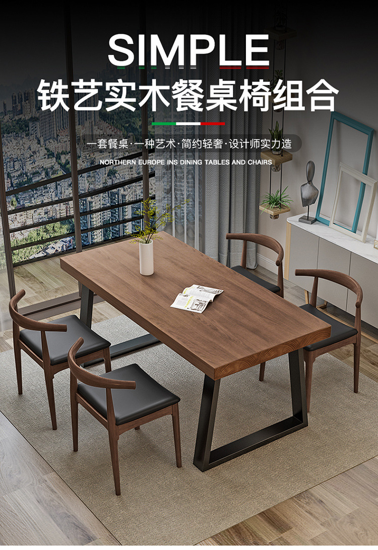 Скандинавская современная обеденная комбинация стола и стульев, стол из железа и массива дерева, повседневный кофейный столик, для малых квартир