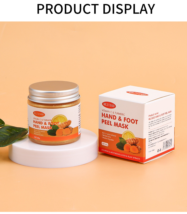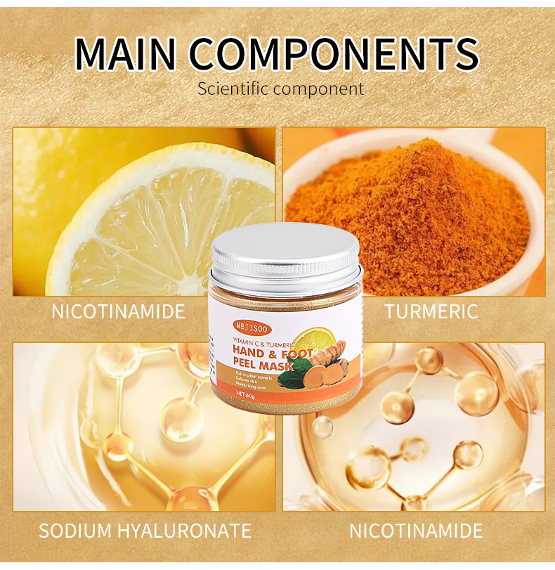 Маска для рук и ног с куркумой и витамином C, отшелушивающая, глубоко очищающая, гель-скраб для ног, полная версия на английском