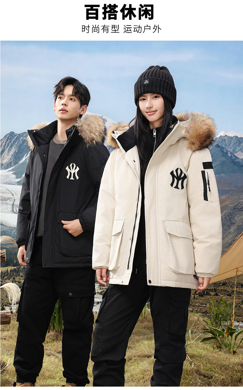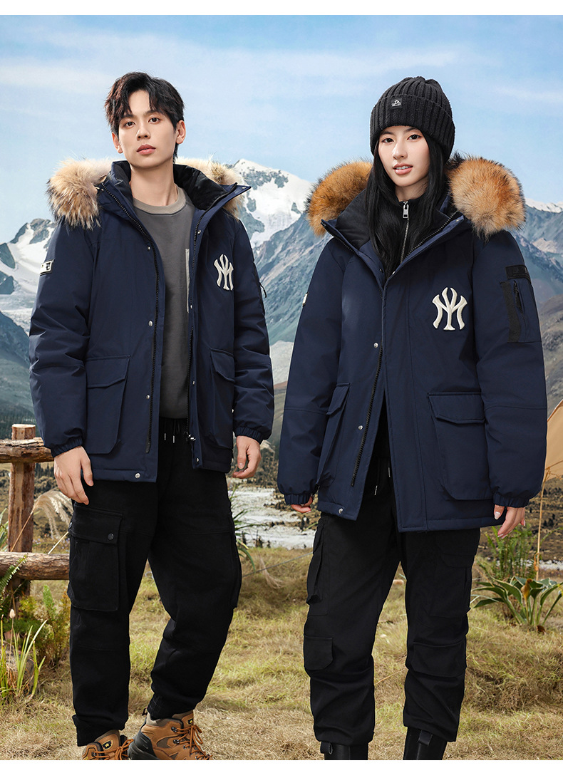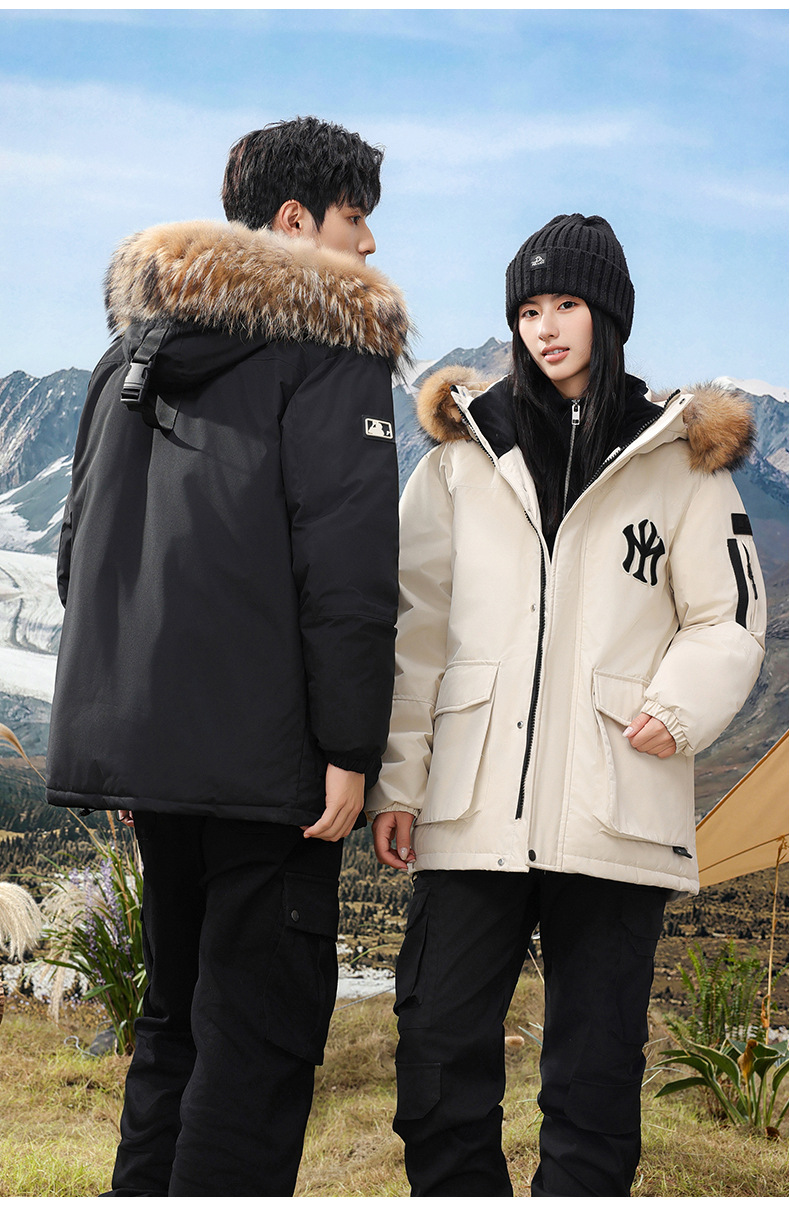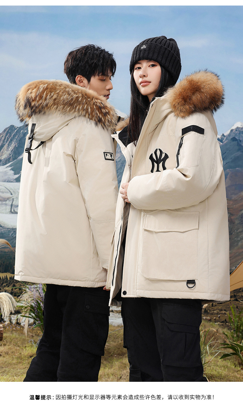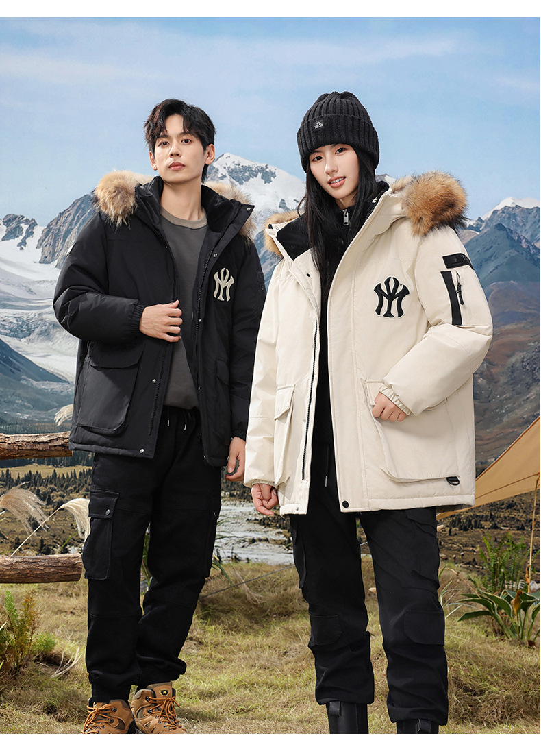 Пуховик с искусственным меховым воротником для мужчин и женщин, стиль для пар, уличный спорт, рабочая одежда, модный бренд, кросс-бодерный пуховик 2402
