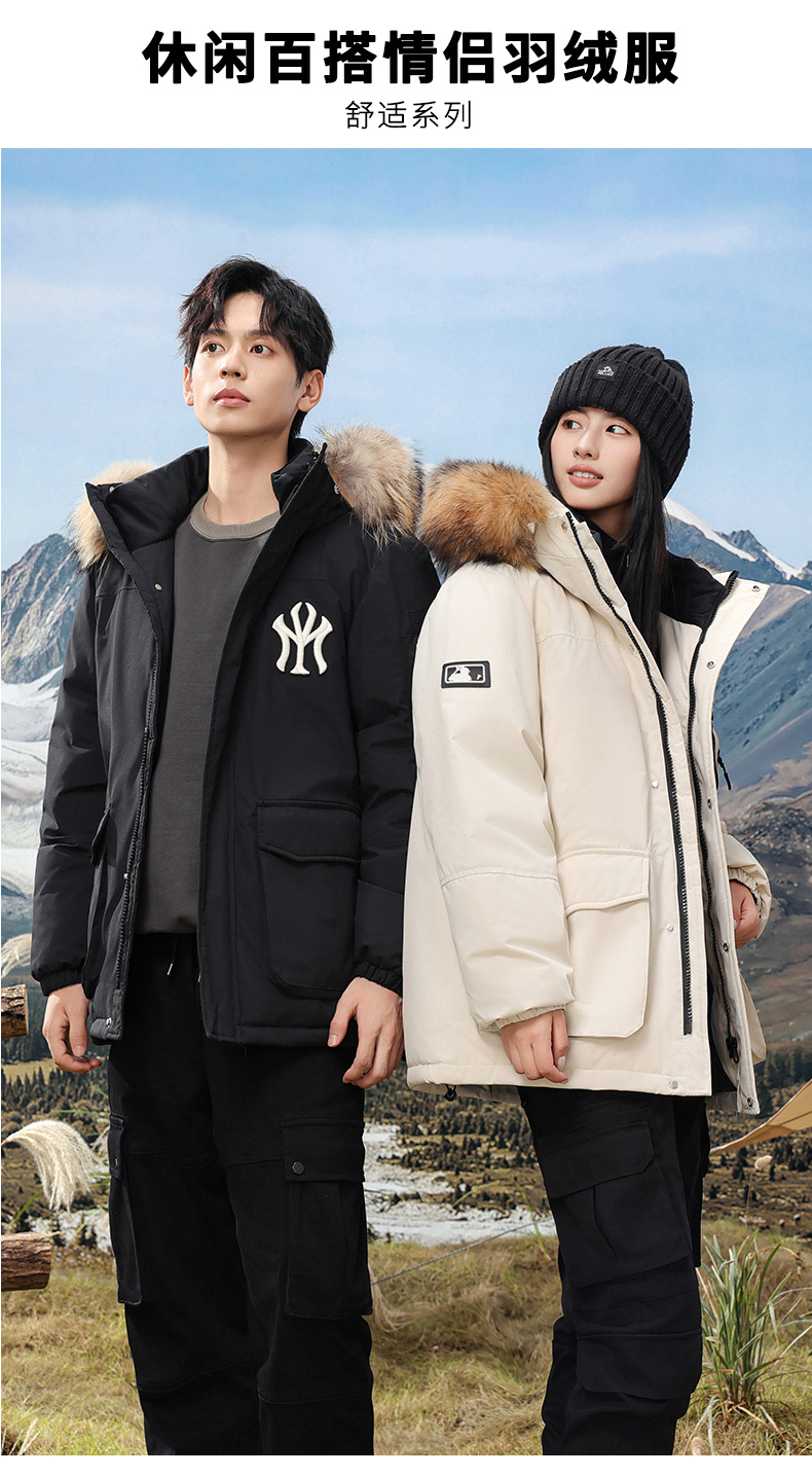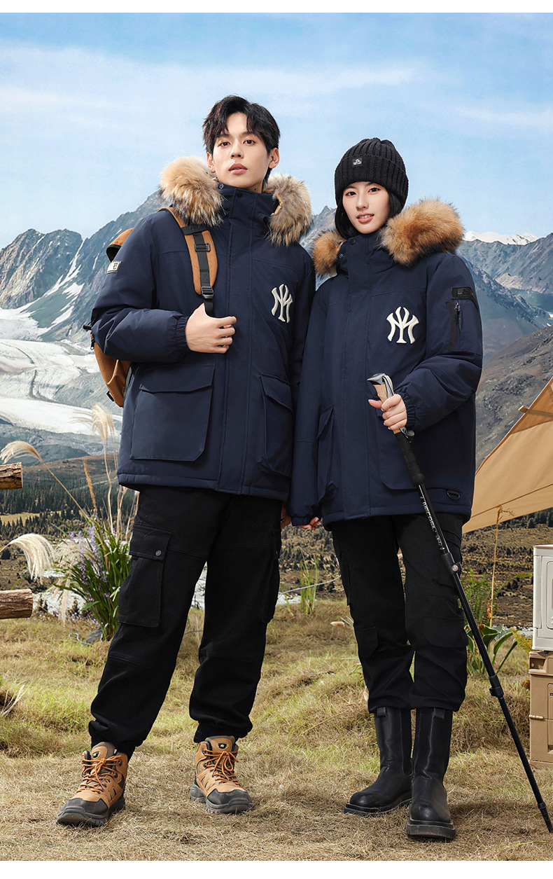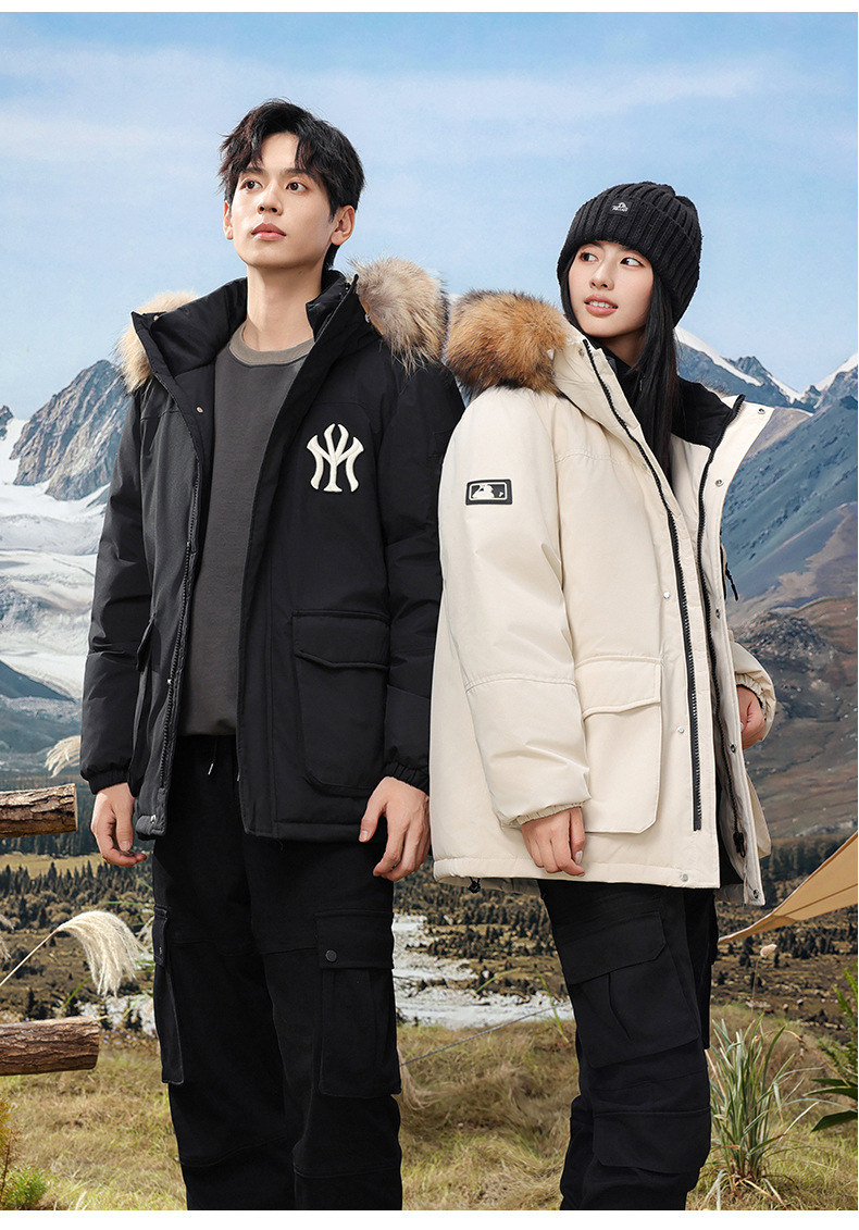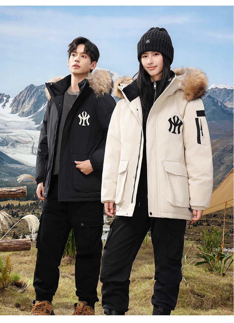 Пуховик с искусственным меховым воротником для мужчин и женщин, стиль для пар, уличный спорт, рабочая одежда, модный бренд, кросс-бодерный пуховик 2402