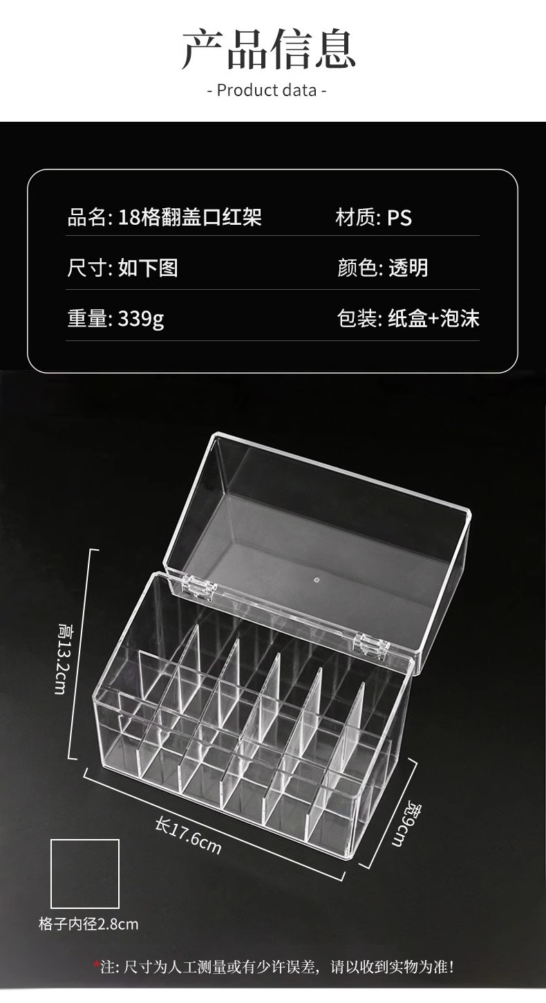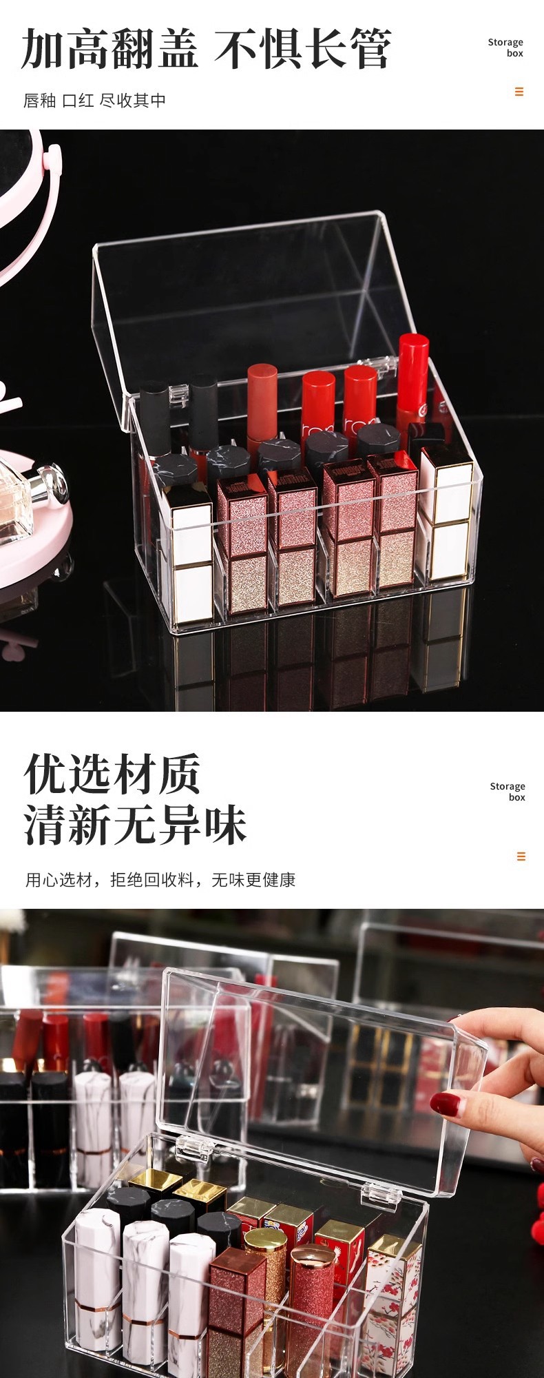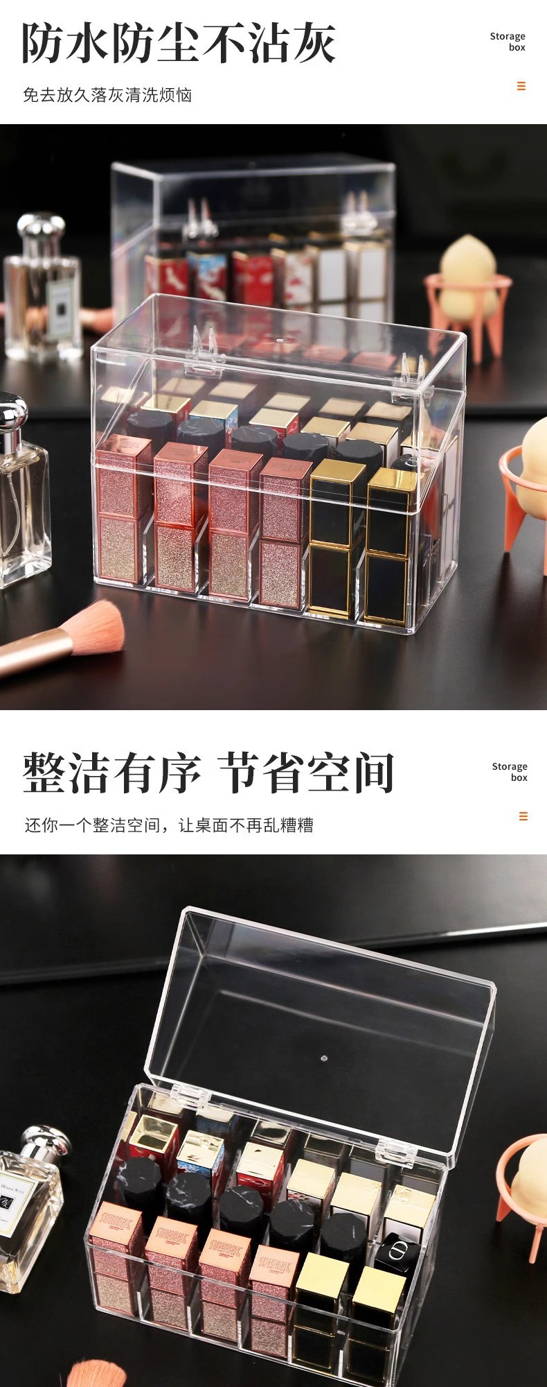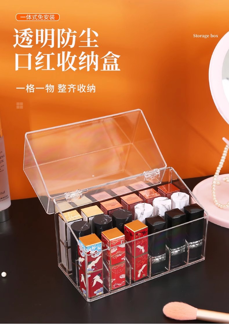 Ящик для хранения помады, пылезащитный, многоячеечный, прозрачный с крышкой