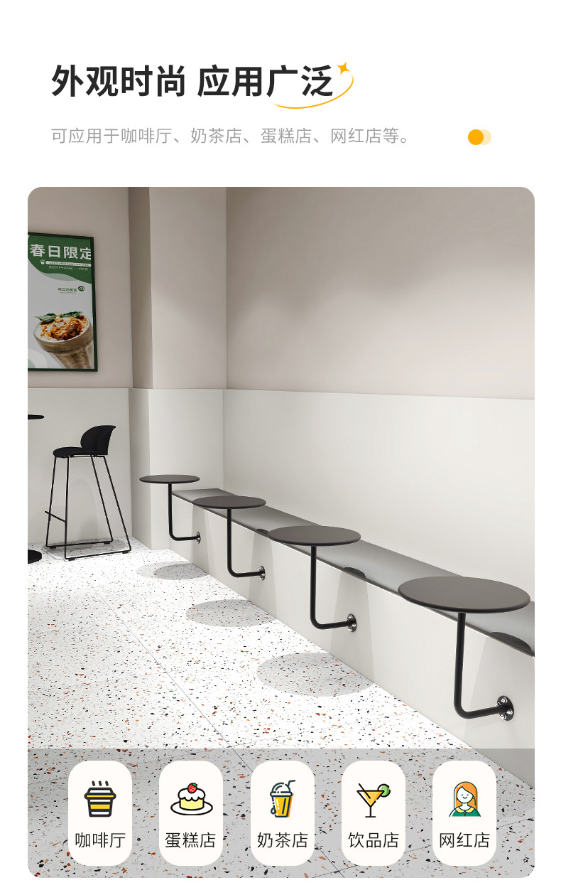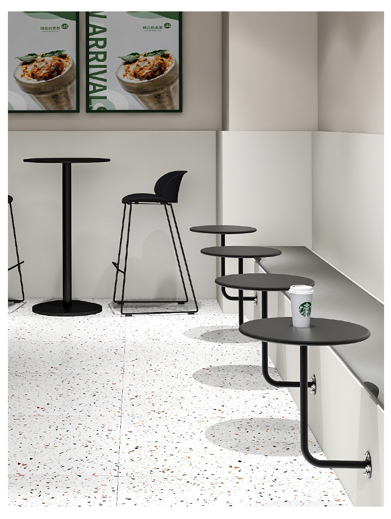 Простой настольный металлический маленький круглый стол, настенный обеденный стол для кафе, молочного чая, фиксированный настенный стол
