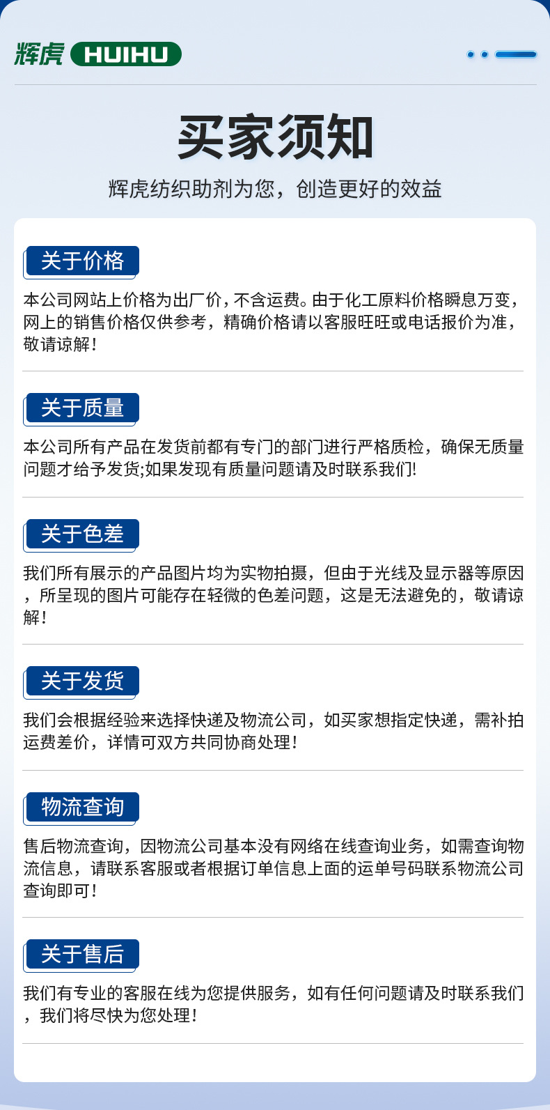 ● 拼用抗静电剂、柔软剂和渗透剂等其它助剂时,请事先充分确认其相容性及对防水防油性的影响。调液时,请先将各种加工助剂到少稀释2~3倍以上再混合。
