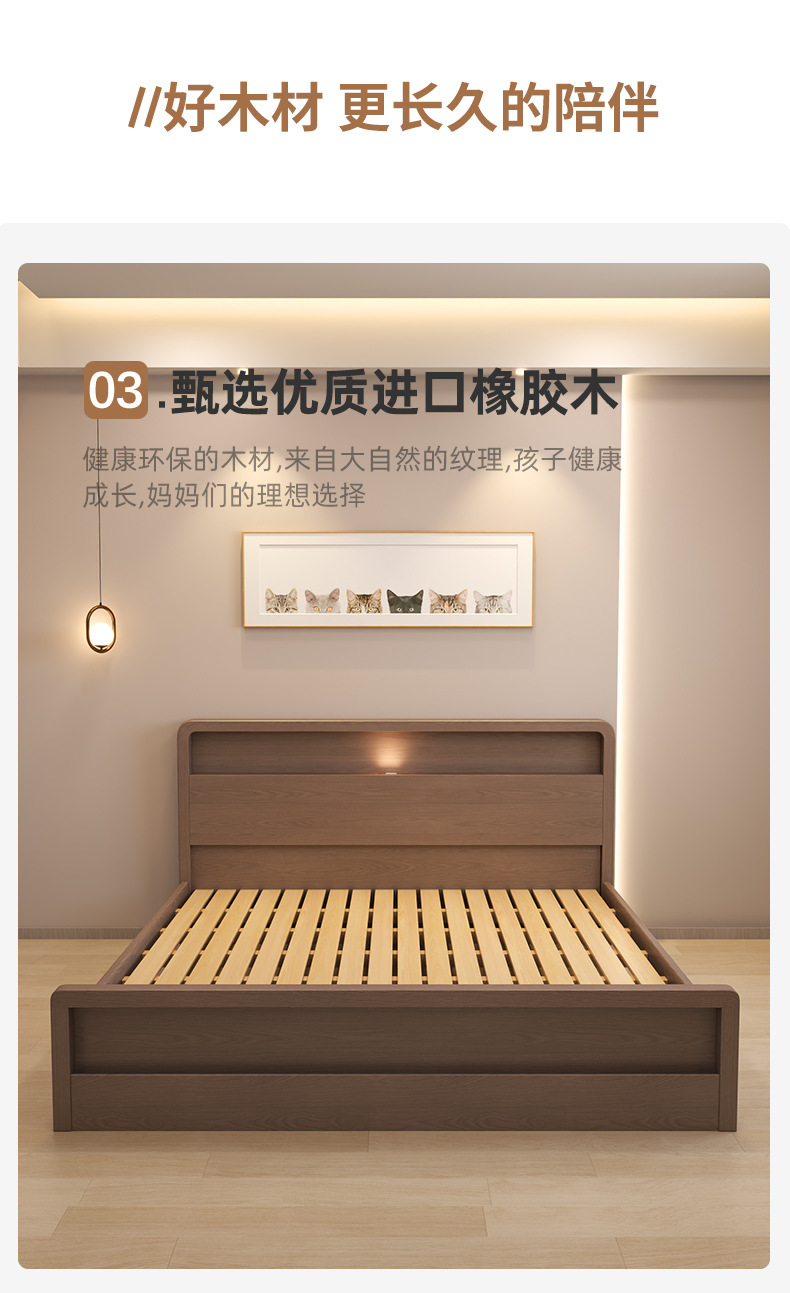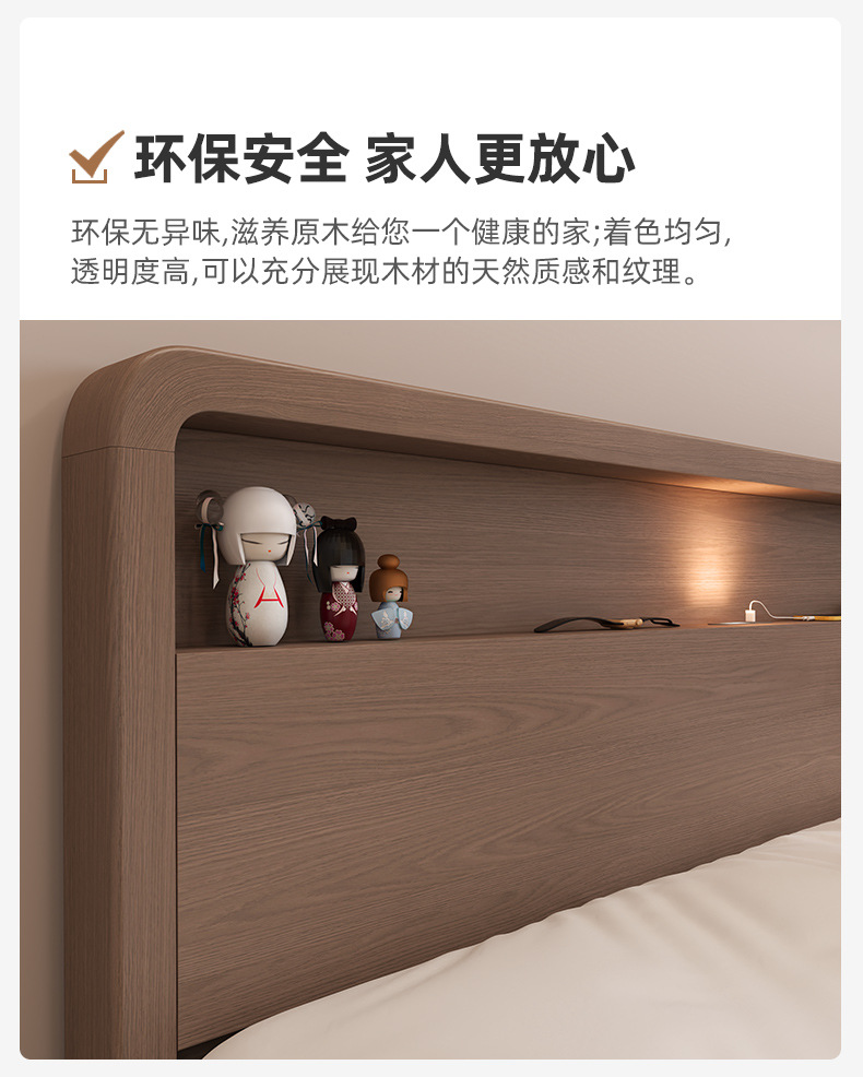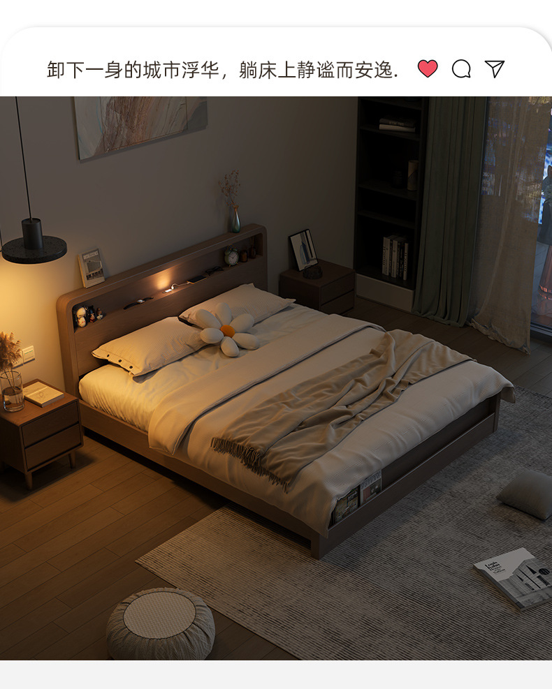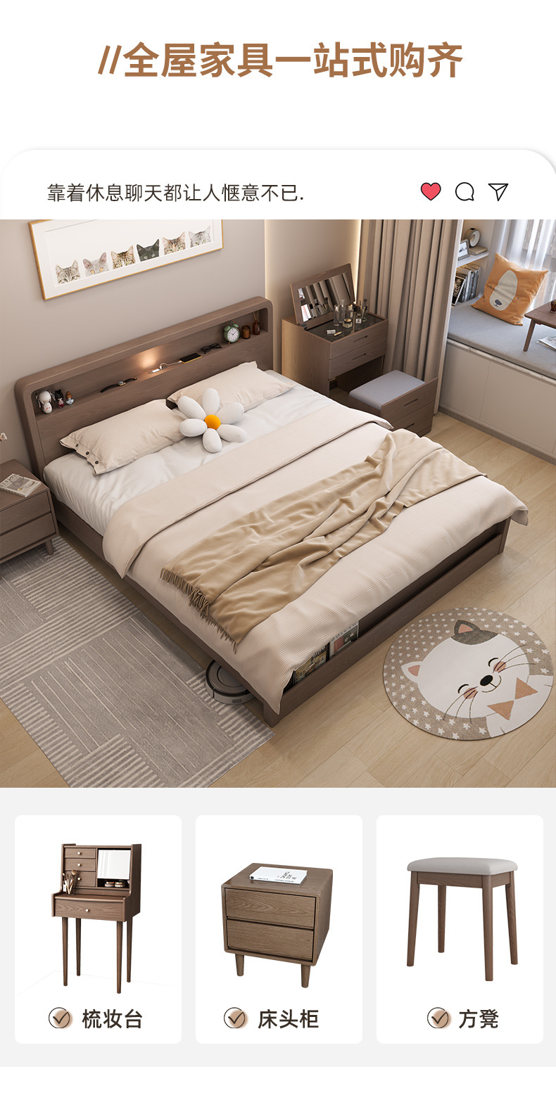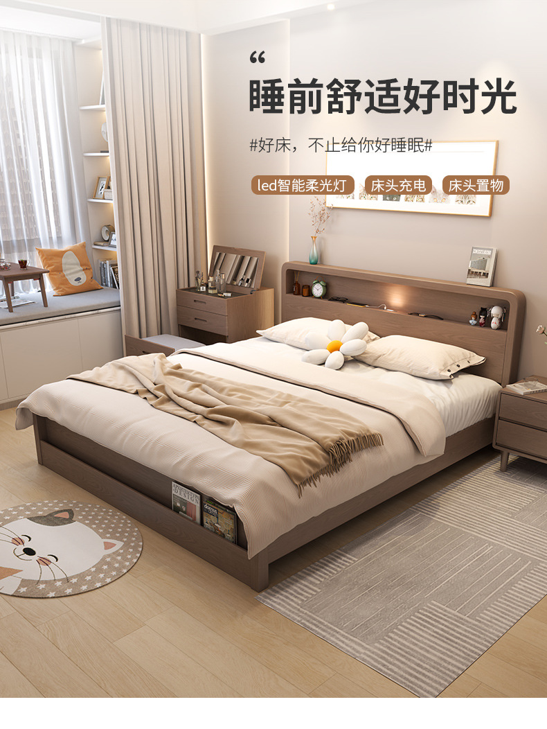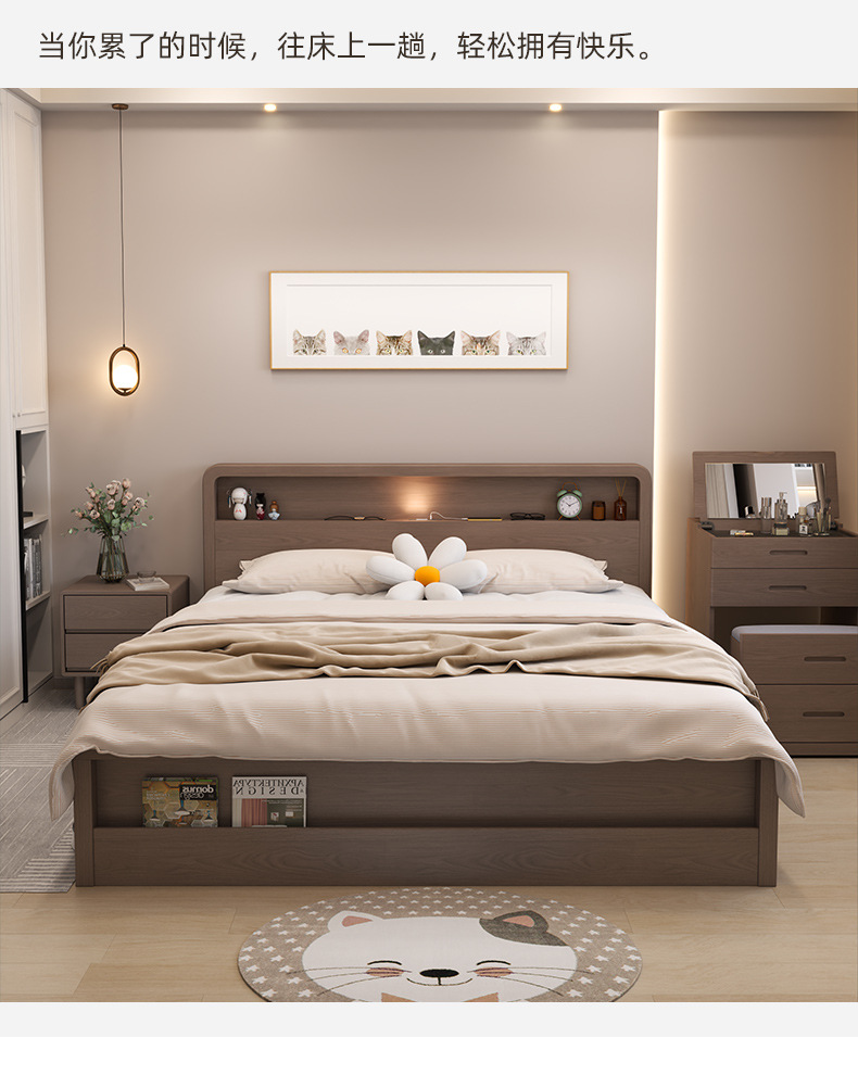 Кровать из массива дерева Nordic 1.5 м Современная простая 1.8 м Двуспальная кровать Королевская кровать Для спальни Малый домашний экономичный вариант
