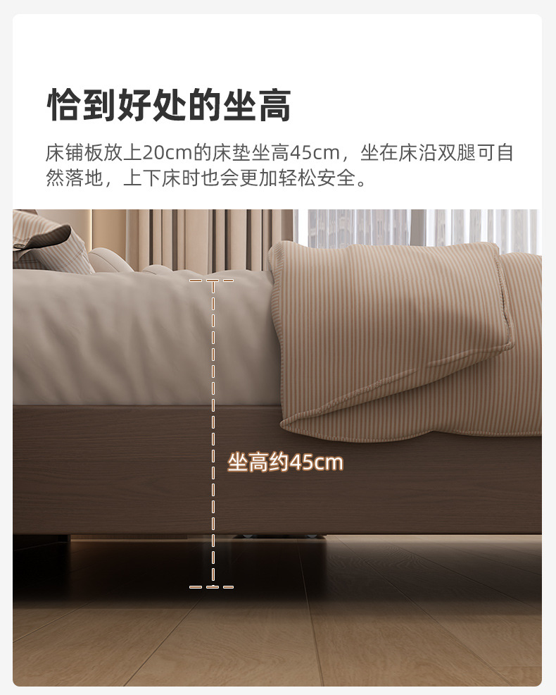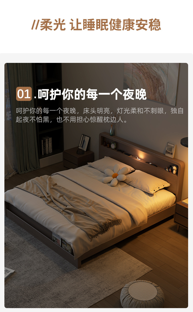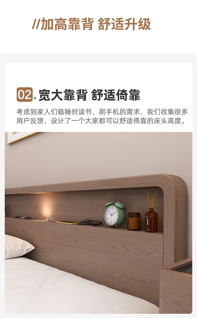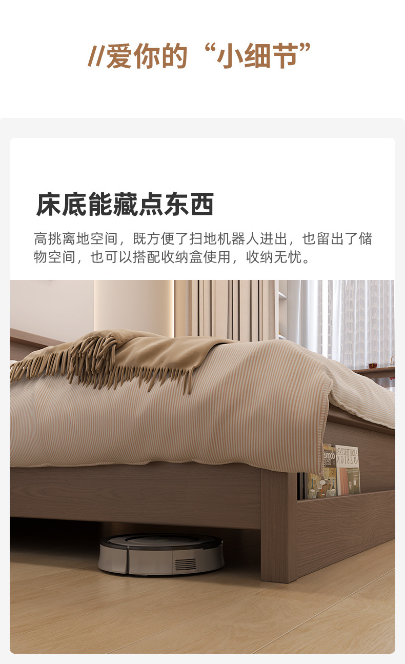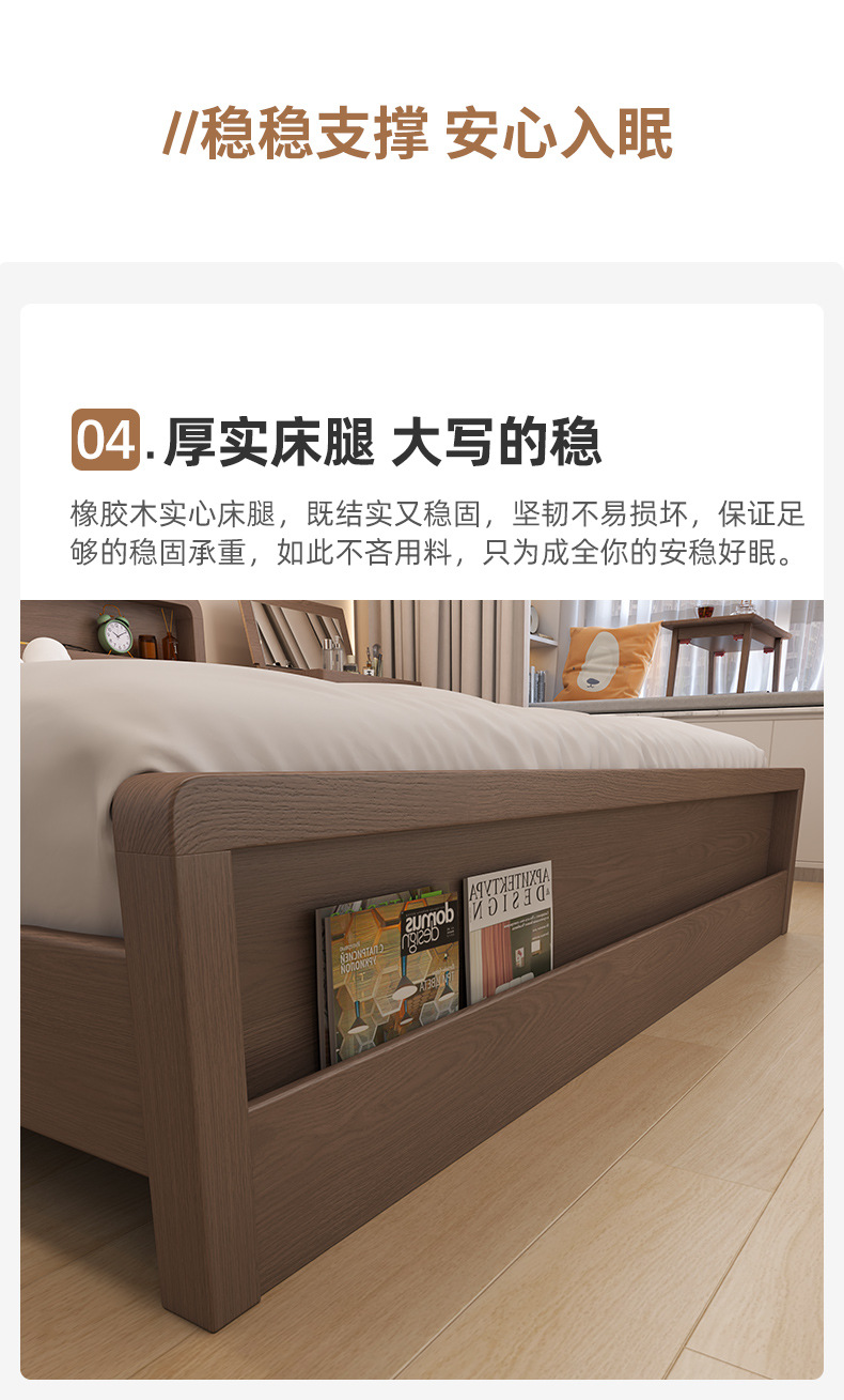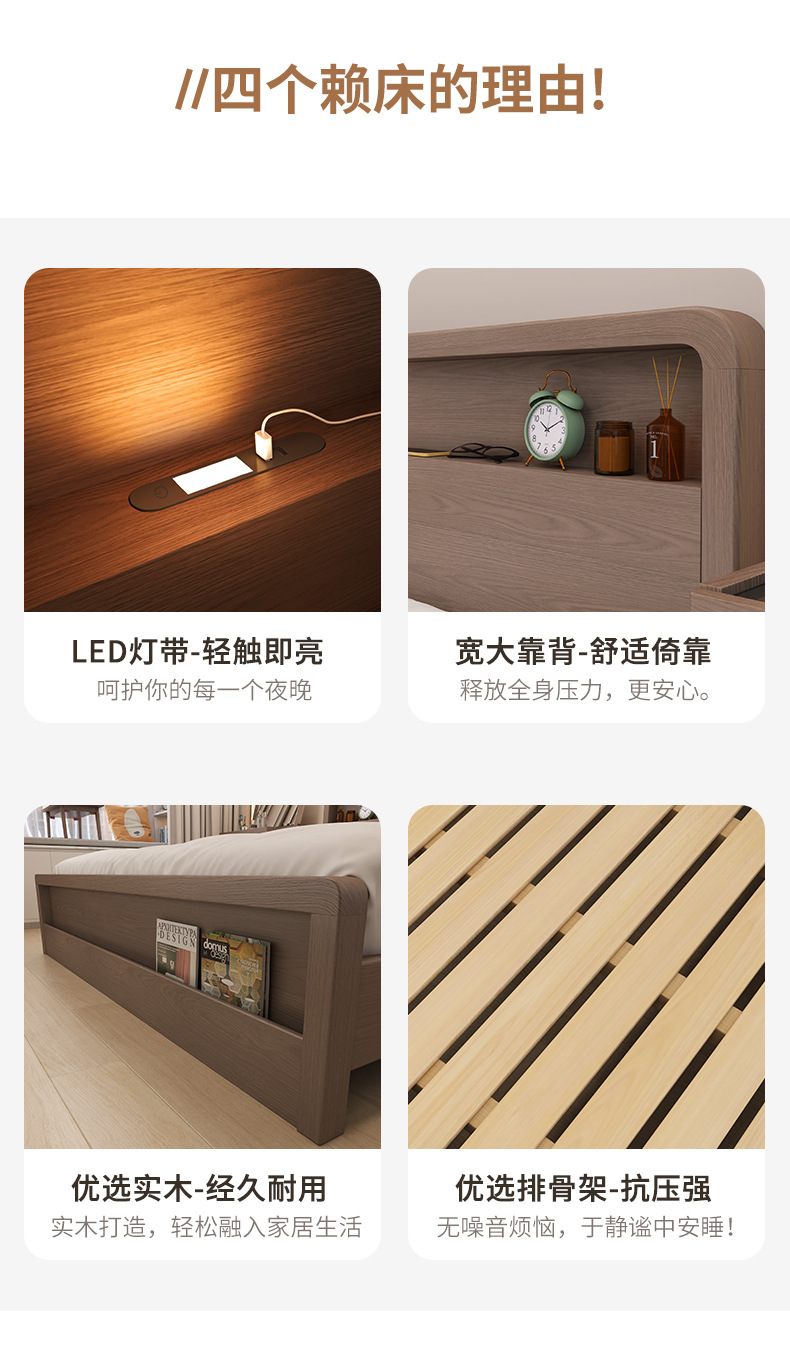 Кровать из массива дерева Nordic 1.5 м Современная простая 1.8 м Двуспальная кровать Королевская кровать Для спальни Малый домашний экономичный вариант