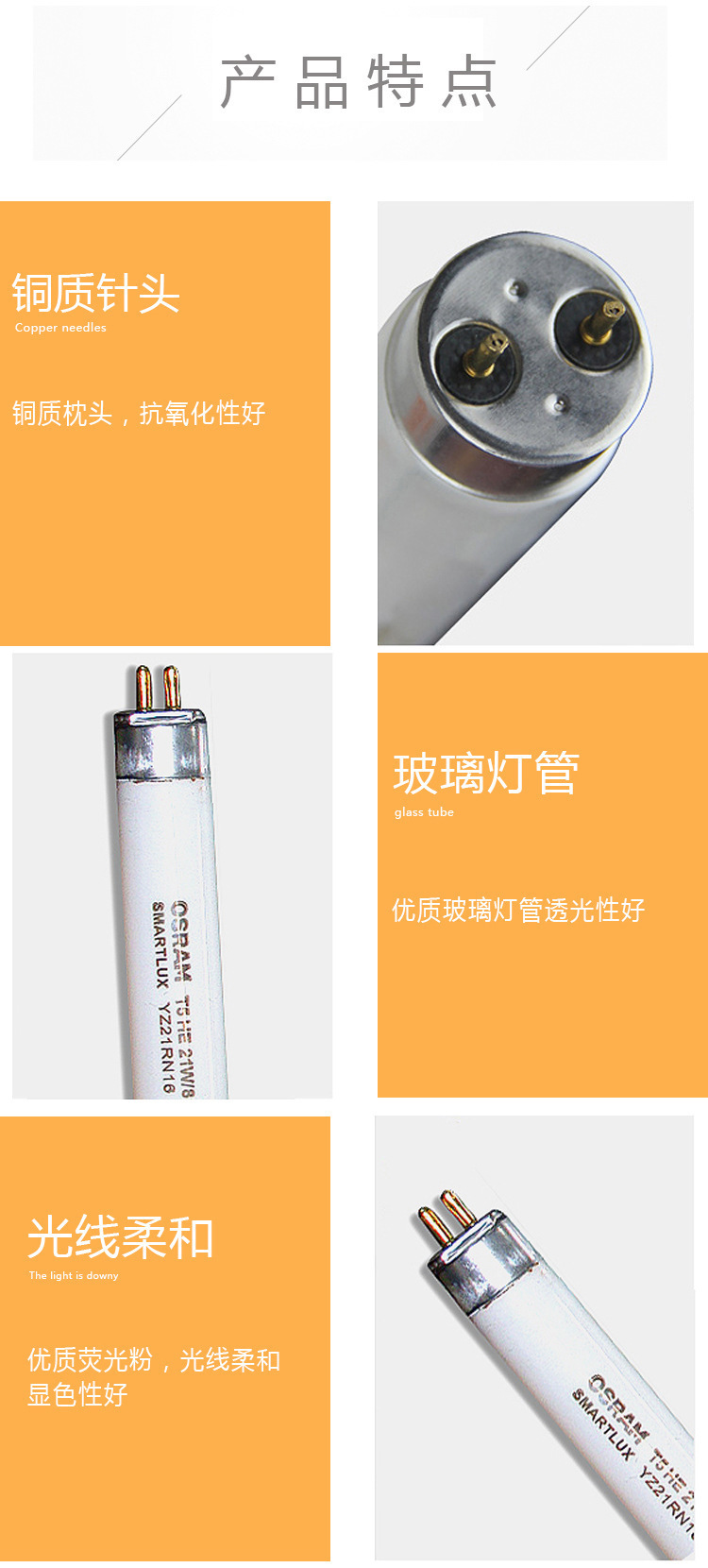 Лампа Osram T5 Ho 54W/80W с высоким световым потоком трехцветная флуоресцентная лампа