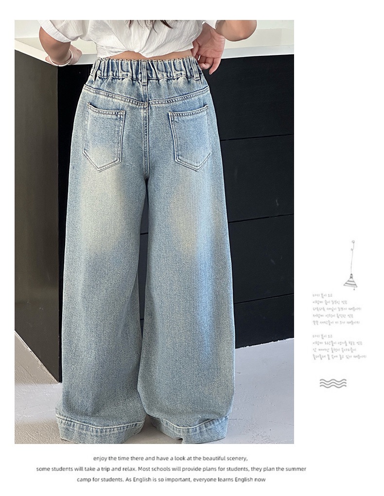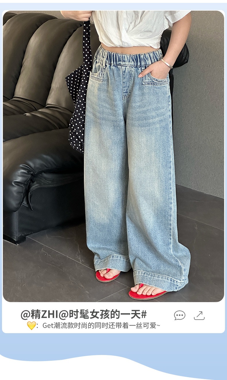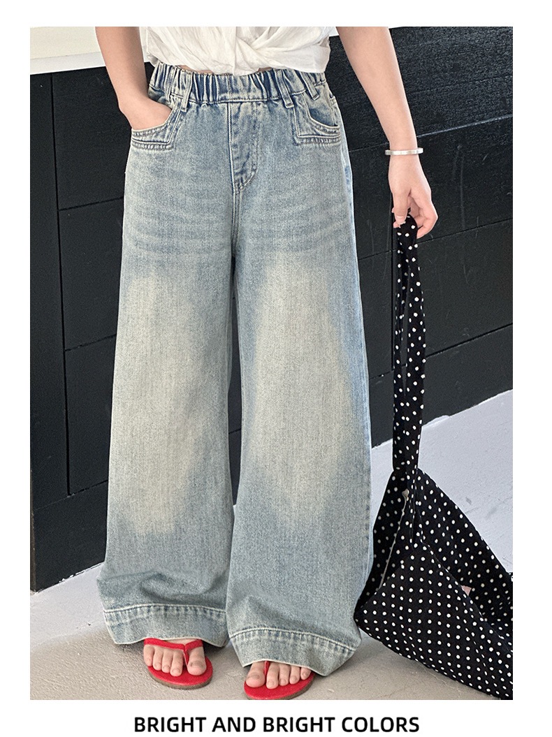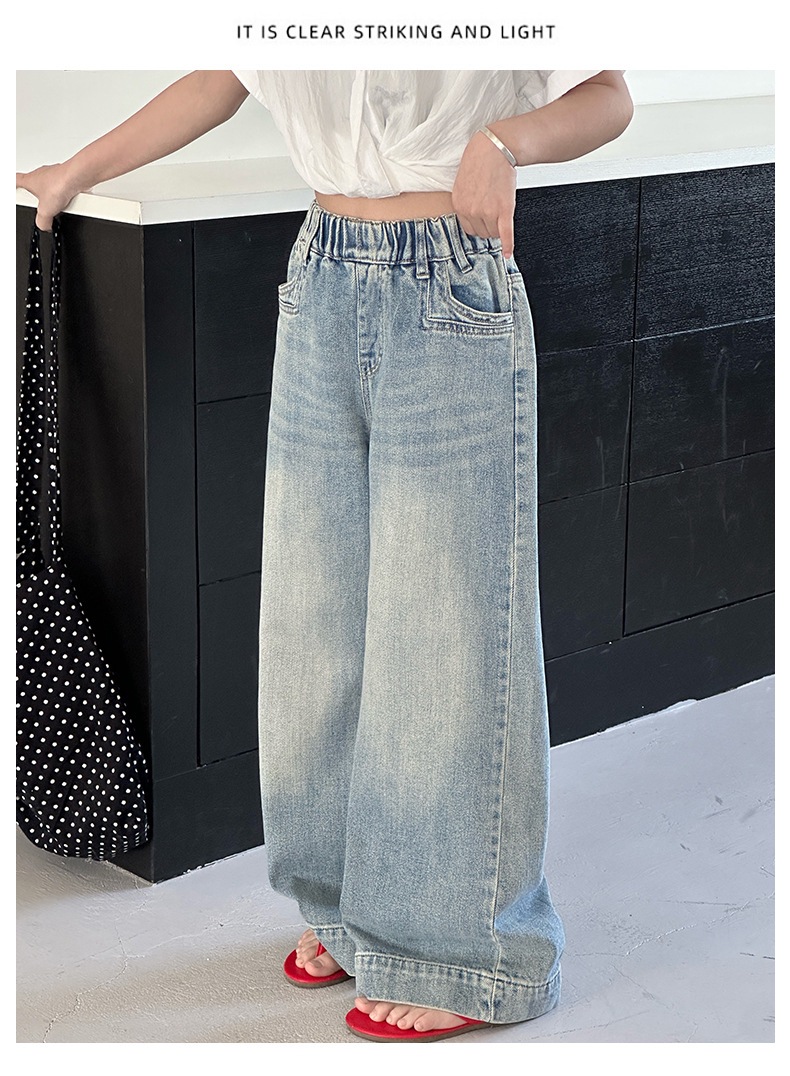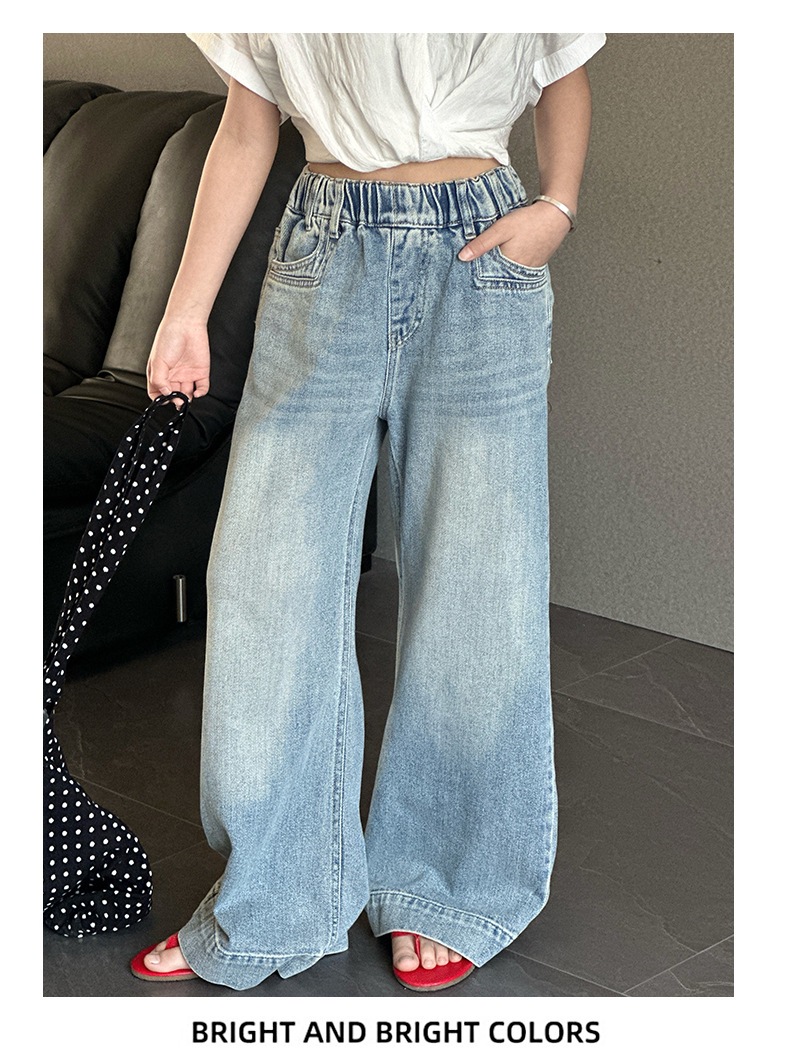 Джинсы для девочек 2025 Новые Весенние джинсовые брюки Корейский стиль Свободные прямые брюки