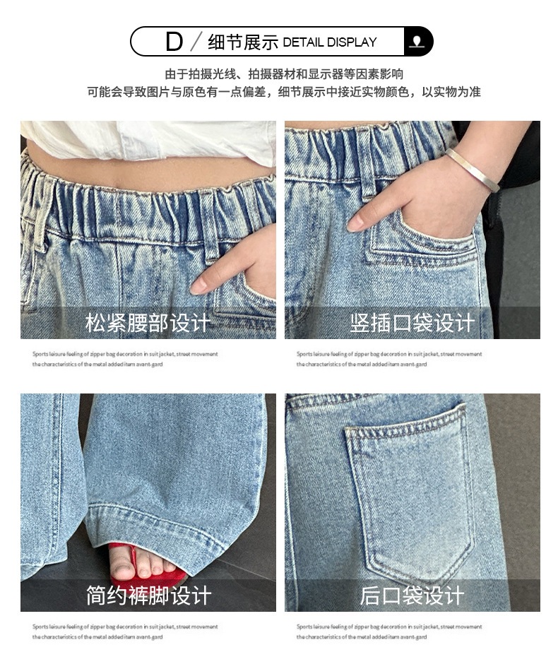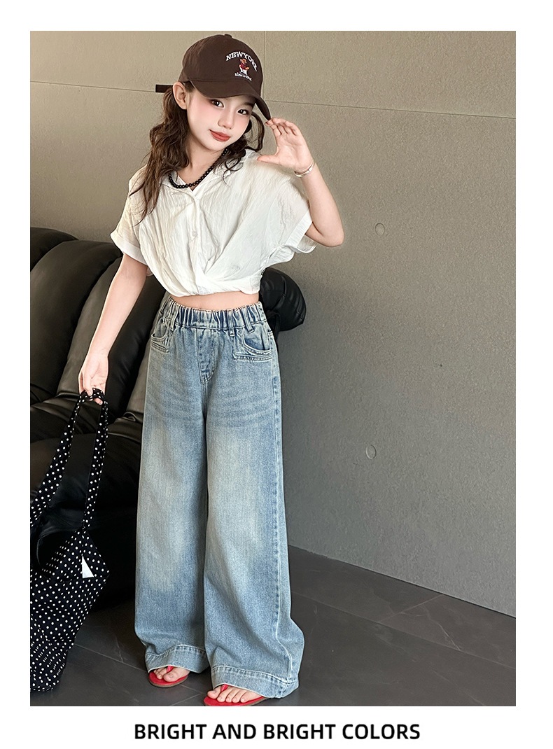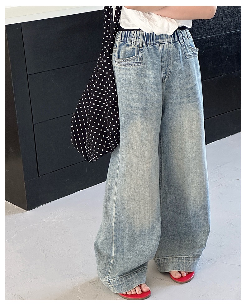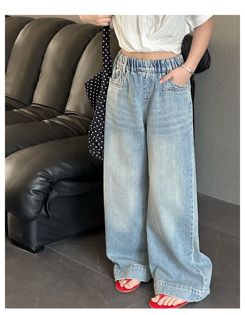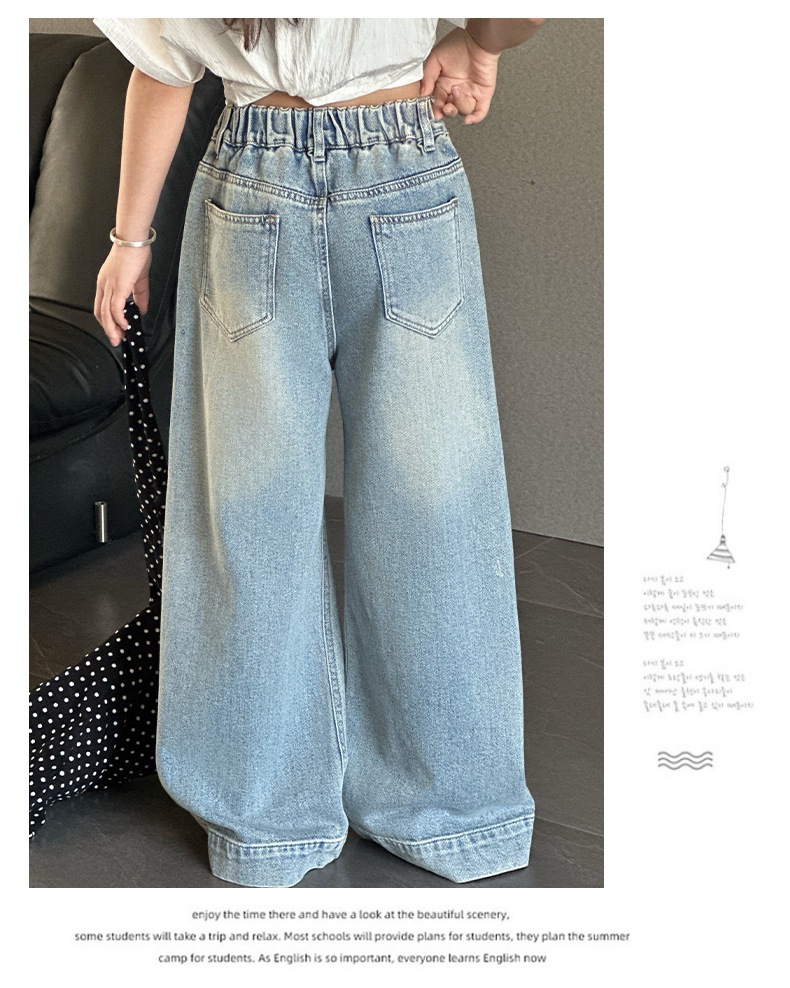 Джинсы для девочек 2025 Новые Весенние джинсовые брюки Корейский стиль Свободные прямые брюки