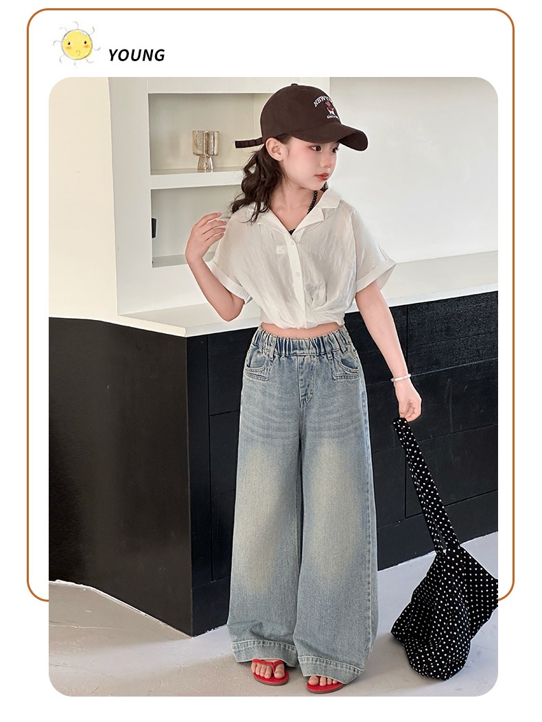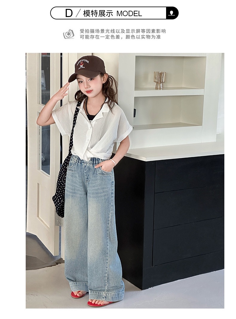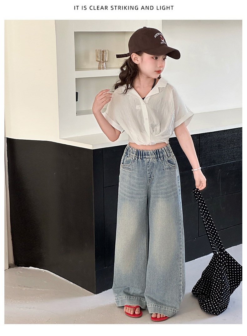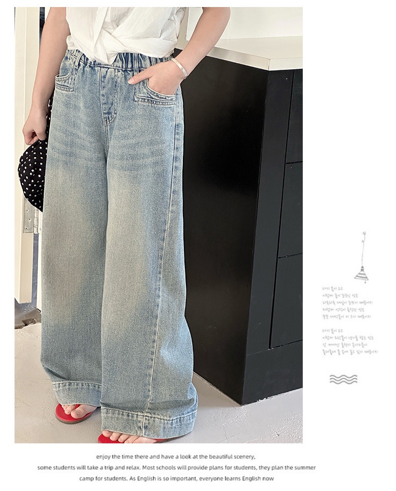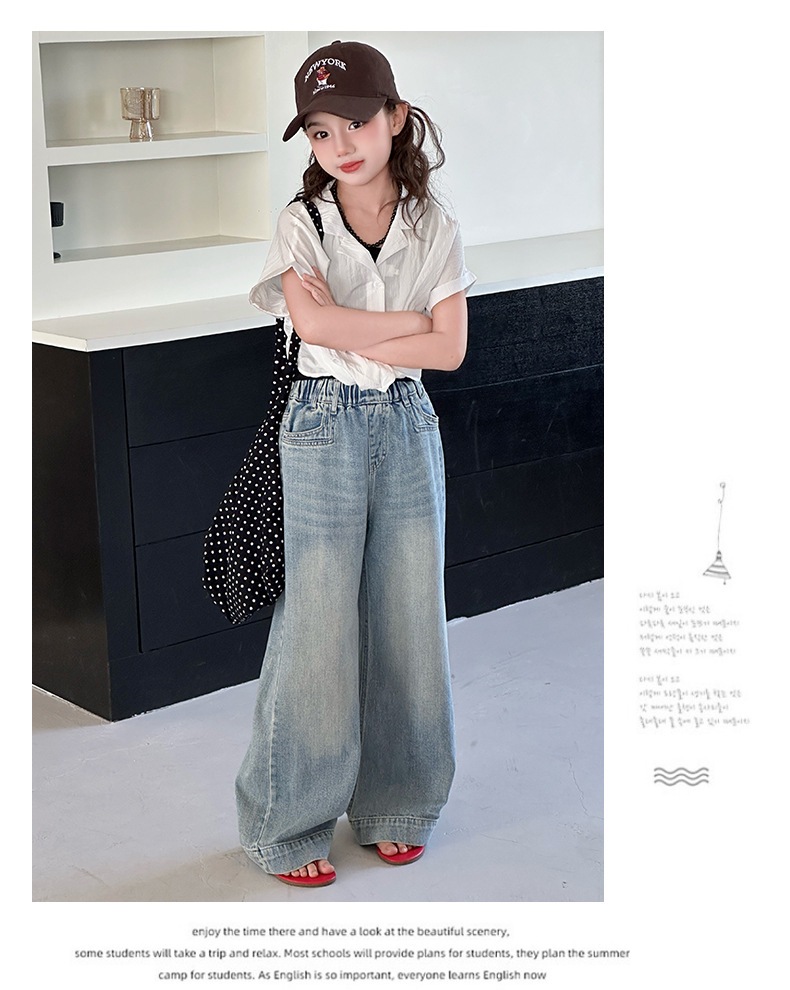 Джинсы для девочек 2025 Новые Весенние джинсовые брюки Корейский стиль Свободные прямые брюки