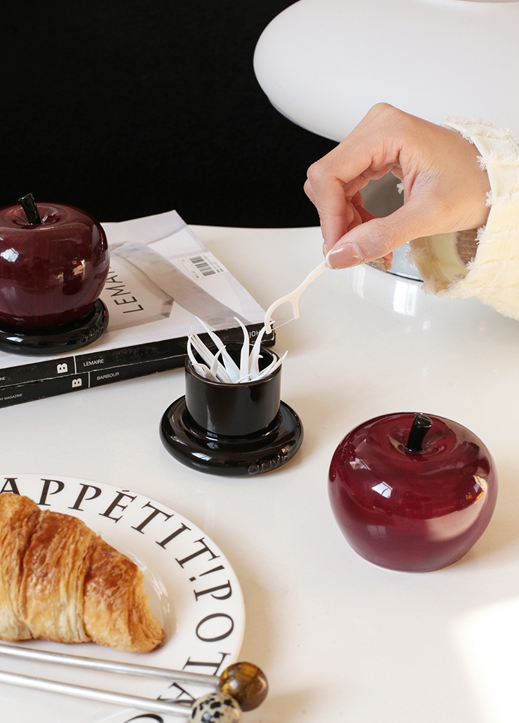 Банка для зубочисток с красным яблоком 1 шт. Высокий стиль домашнего декора, ювелирное хранение зубной нити, декоративные украшения