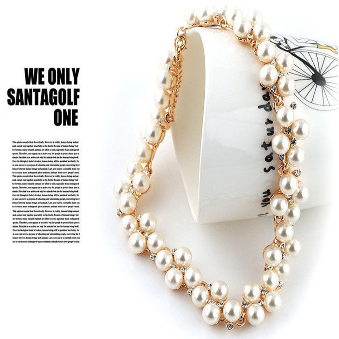 Аутентичный комплект из короткого ожерелья и серег с жемчугом и стразами, южнокорейский стиль, универсальный для женщин
