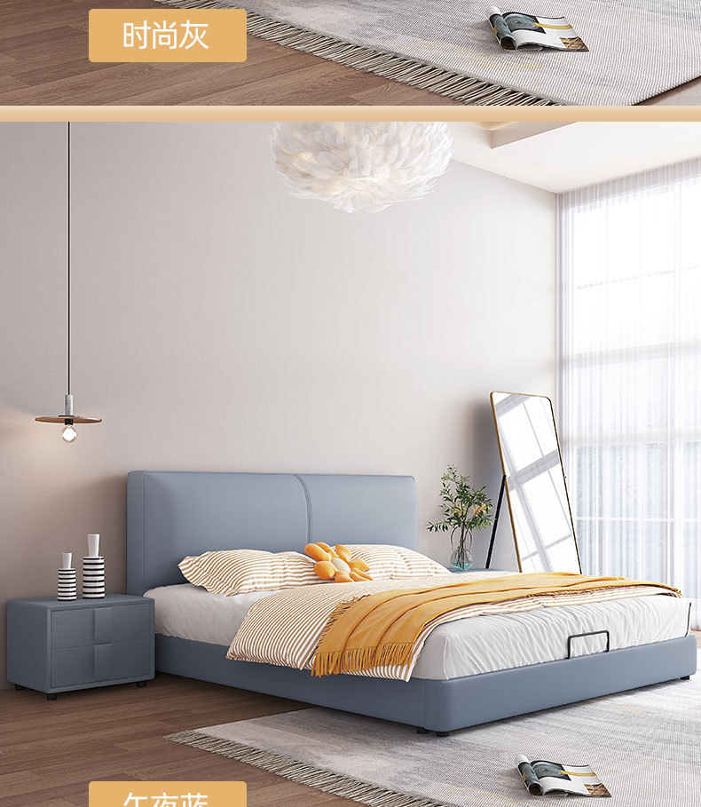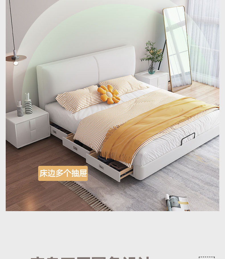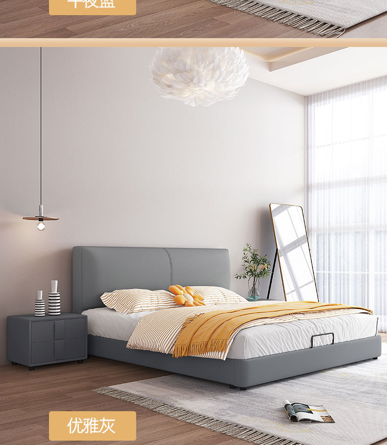 Оптовая продажа, кровать для небольшой квартиры, кожаная кровать, современная простая кровать с ящиками, итальянская минималистичная двуспальная мягкая кровать