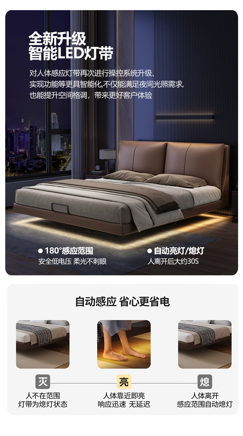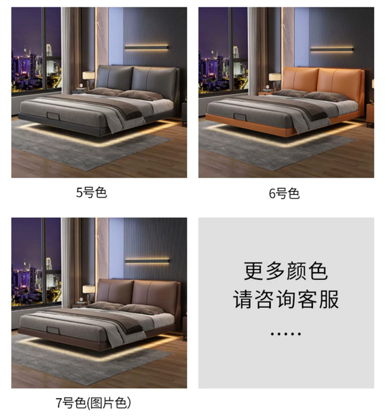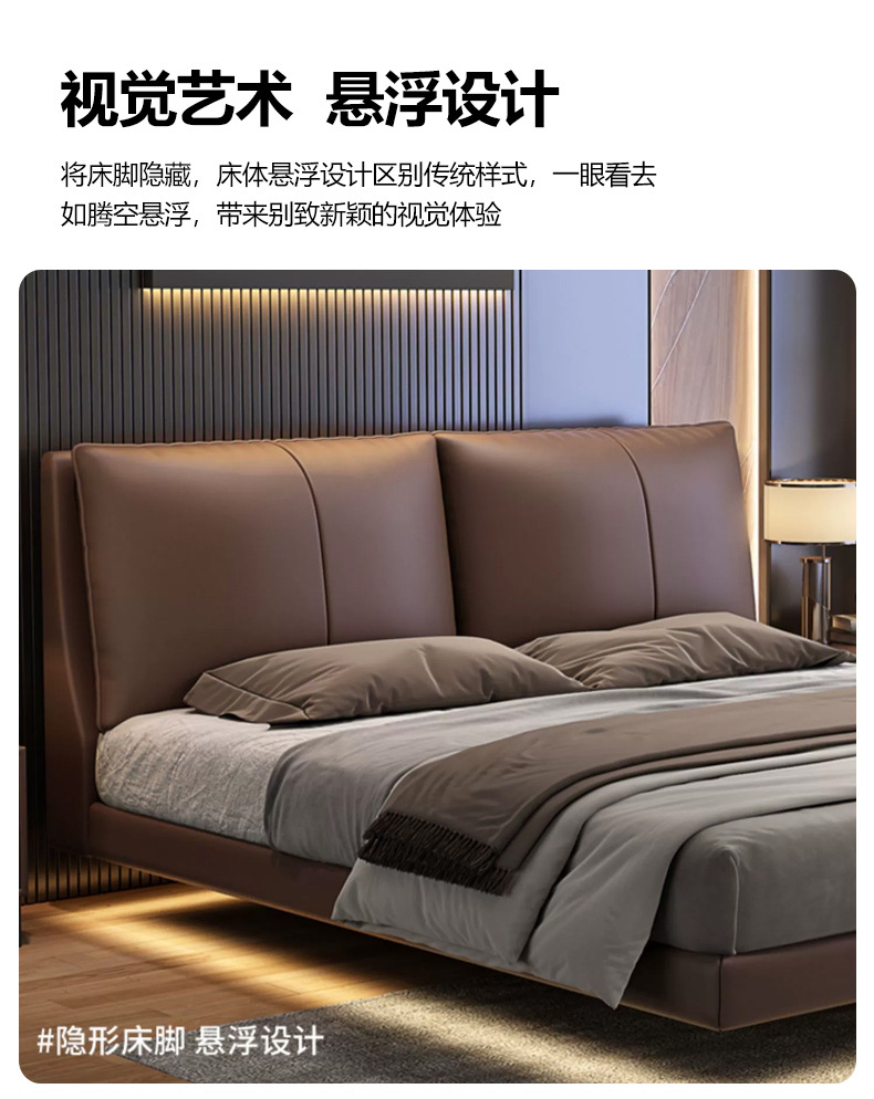Оптовая продажа подвесной кровати, верхний слой из коровьей кожи, высококачественная итальянская простая кровать для спальни, малогабаритная 1.8 м двуспальная мягкая кровать