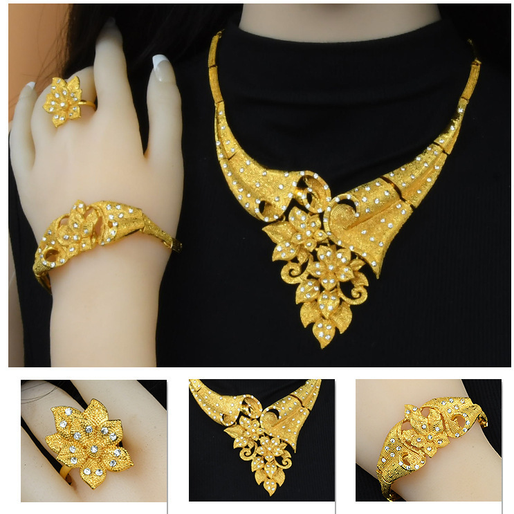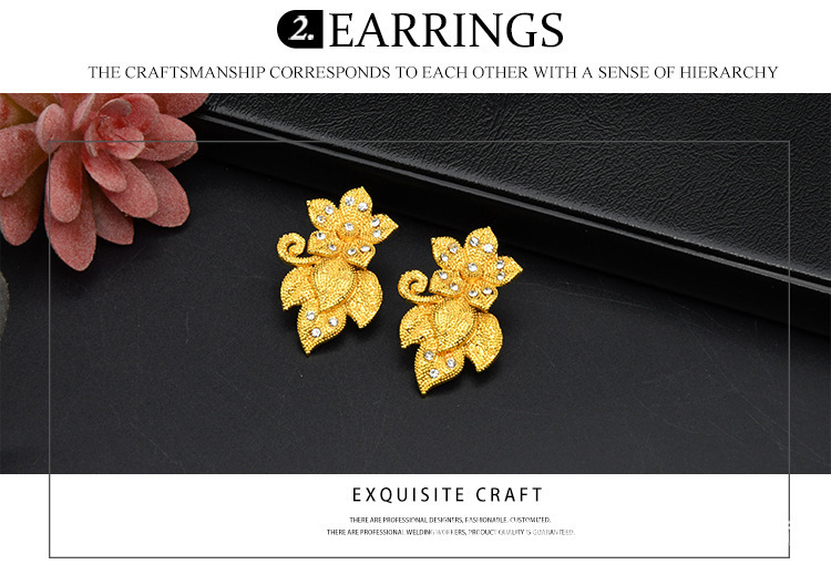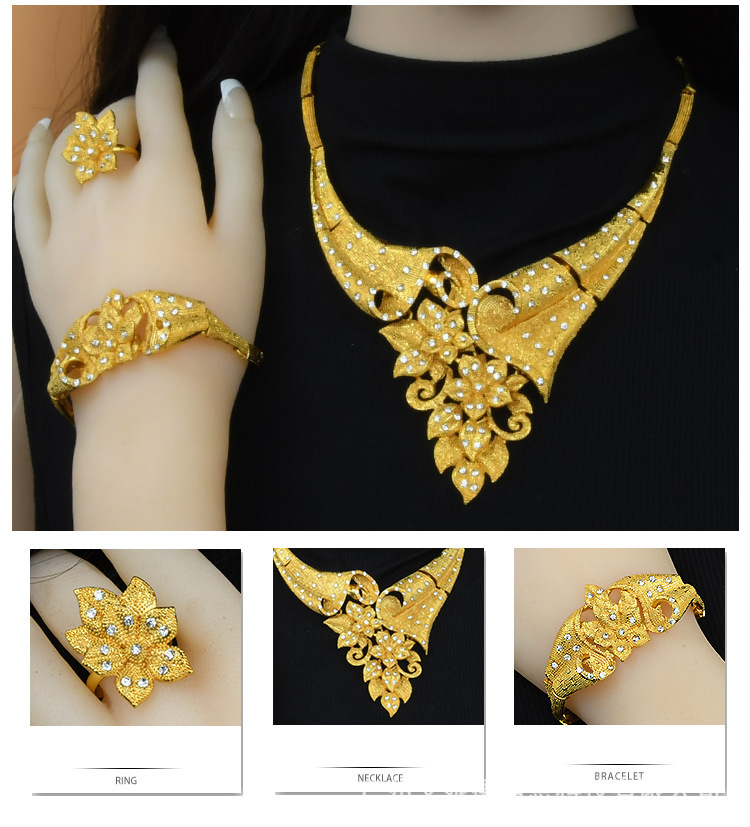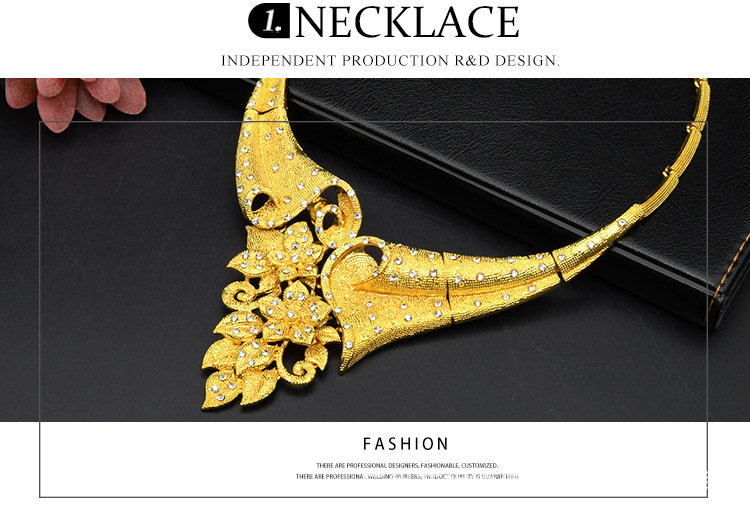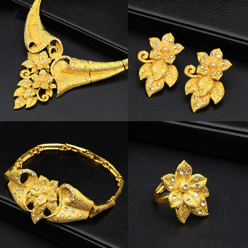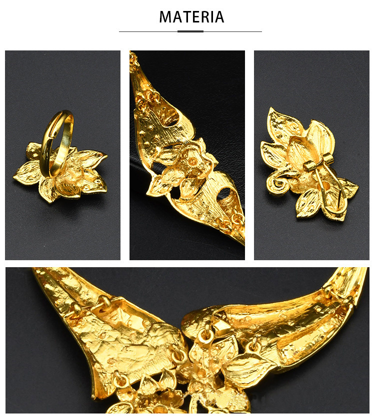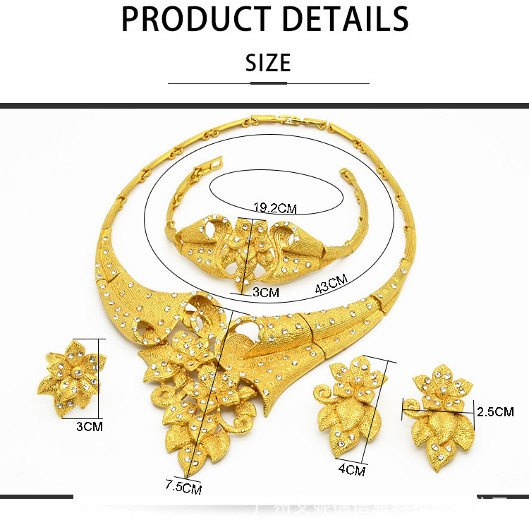 Аутентичное свадебное ожерелье Sandy Gold Flower, женский комплект для невесты, имитация золота с цирконами