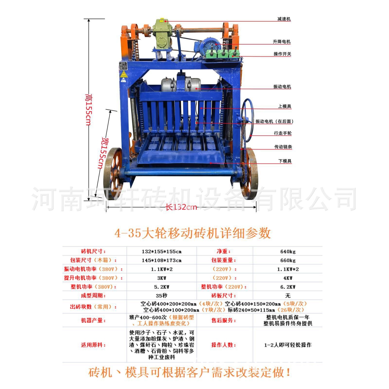 Мобильная машина для производства цементных кирпичей типа 4-35 с большими колесами, машина для производства бетонных блоков без поддонов, полусамостоятельная машина для производства кирпичей