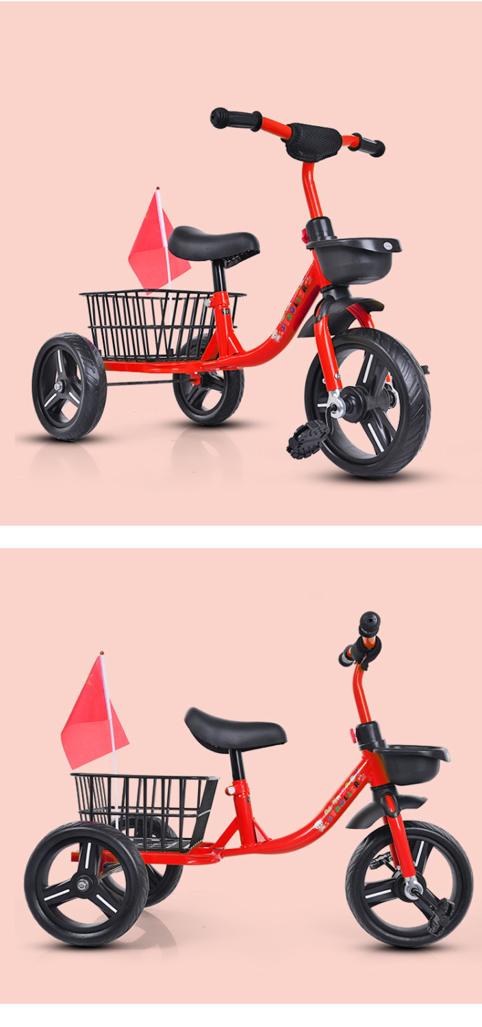 Детский трехколесный велосипед с фонариком и корзиной для детей 1-6 лет