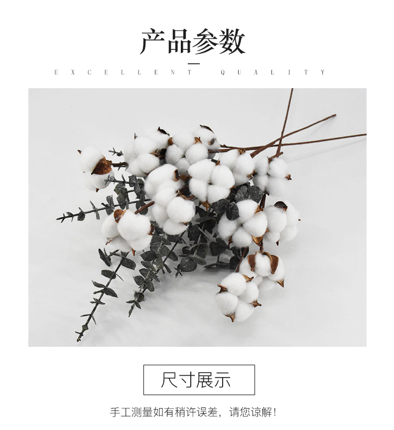 天然棉花干花厂家批发单枝棉花花束花艺插花用带杆仿真棉花干花枝 cotton