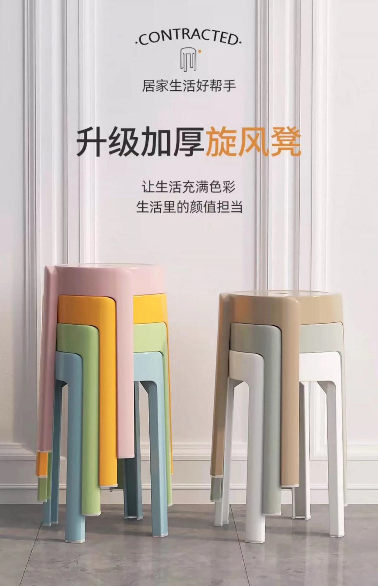 Утолщенный пластиковый табурет, домашний круглый табурет, простой складной табурет, табурет ветряной мельницы, высокий табурет для обеденного стола