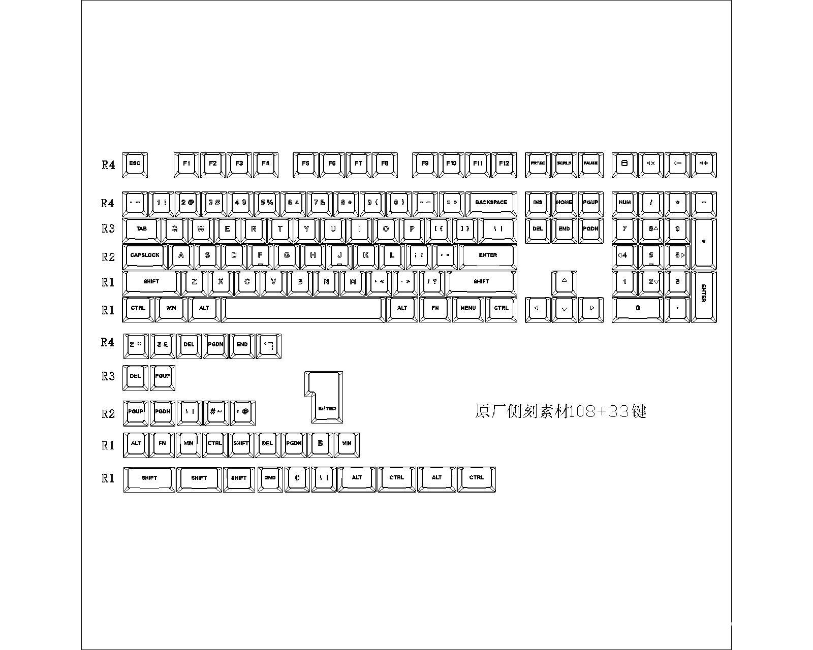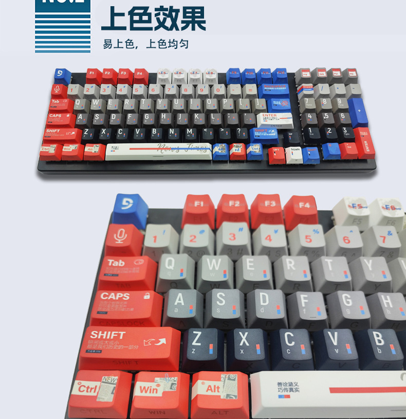Клавиши PBT с боковой печатью, закрытый символ, двойное инжекционное формование, светящиеся клавиши, материал сублимации красителя, боковая печать белая, 143 клавиши