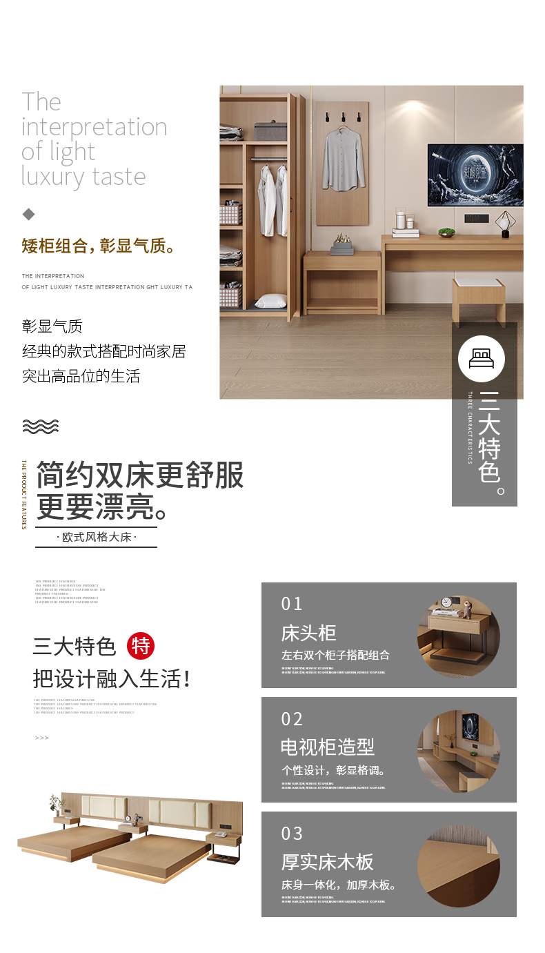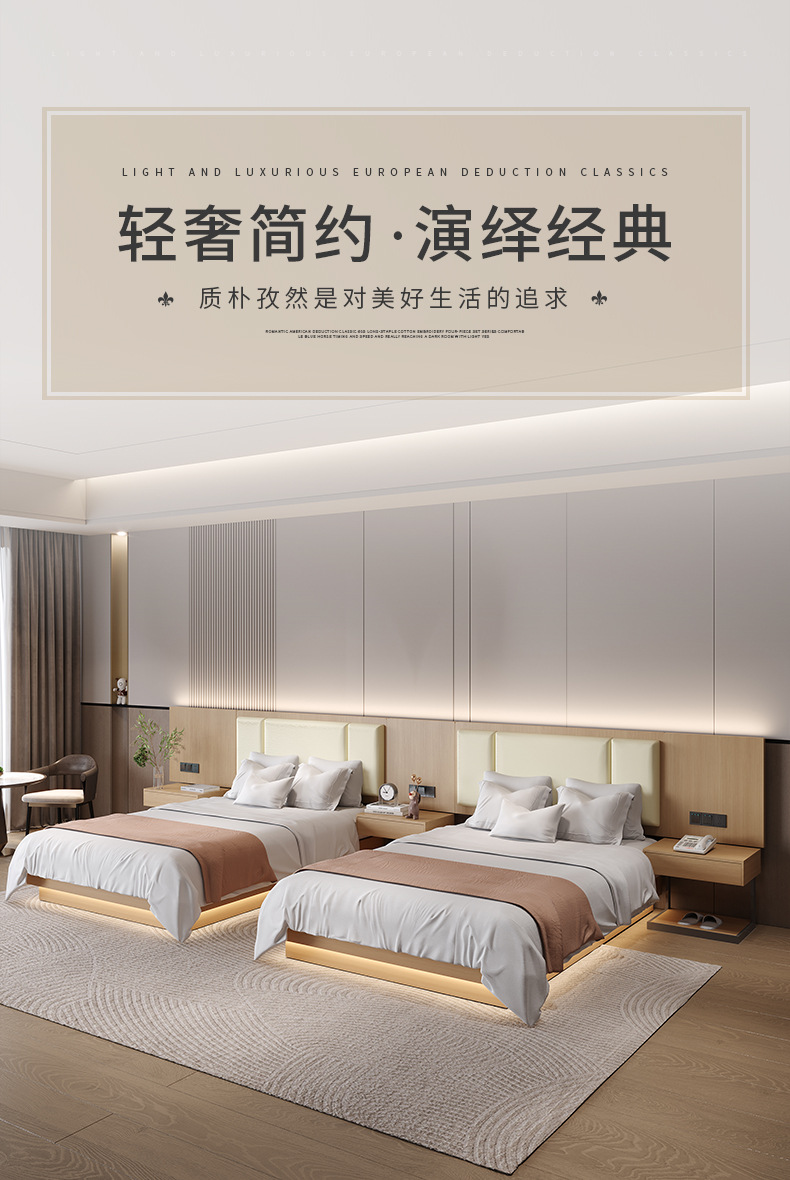 Мебель для гостиниц, кровать для гостевой комнаты, полный комплект для апартаментов и гостиниц, стандартная кровать, экономичный отель, одно- и двуспальная из массива дерева