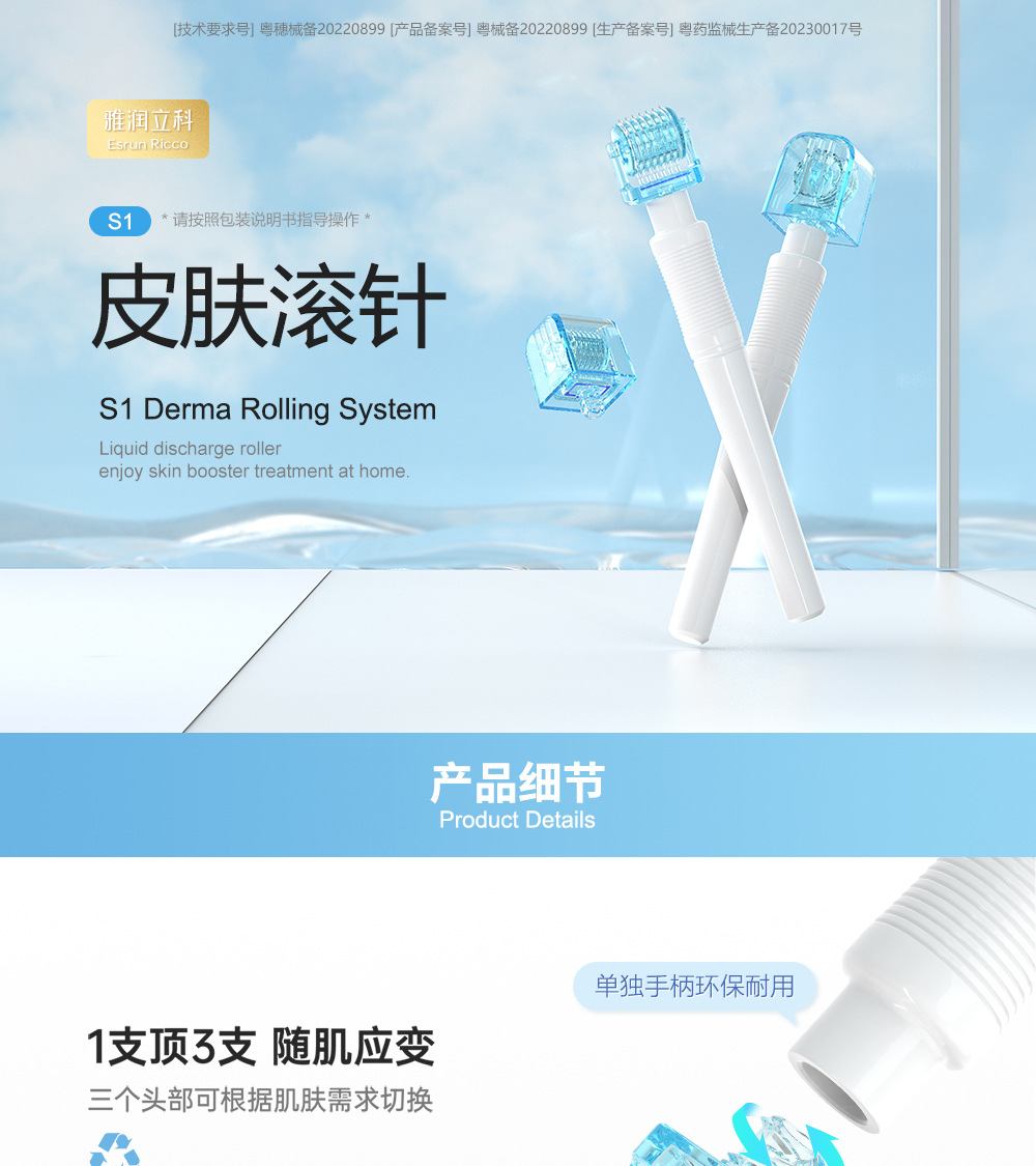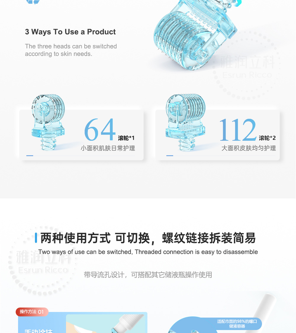 UHOOMA новый трехв одном многофункциональный игольчатый роллер, съемный, с заменяемой головкой