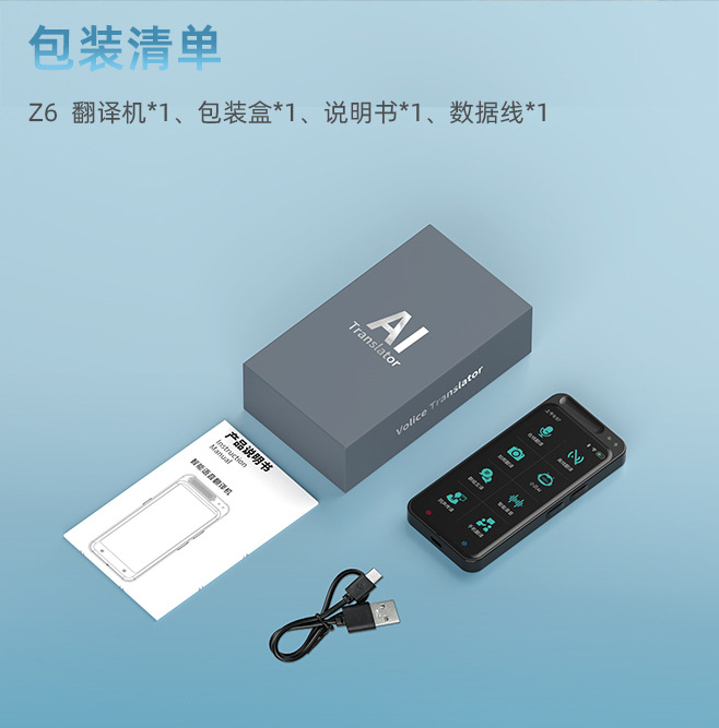 Список упаковки Translator*1, charging cable*1, manual*1, color box*1