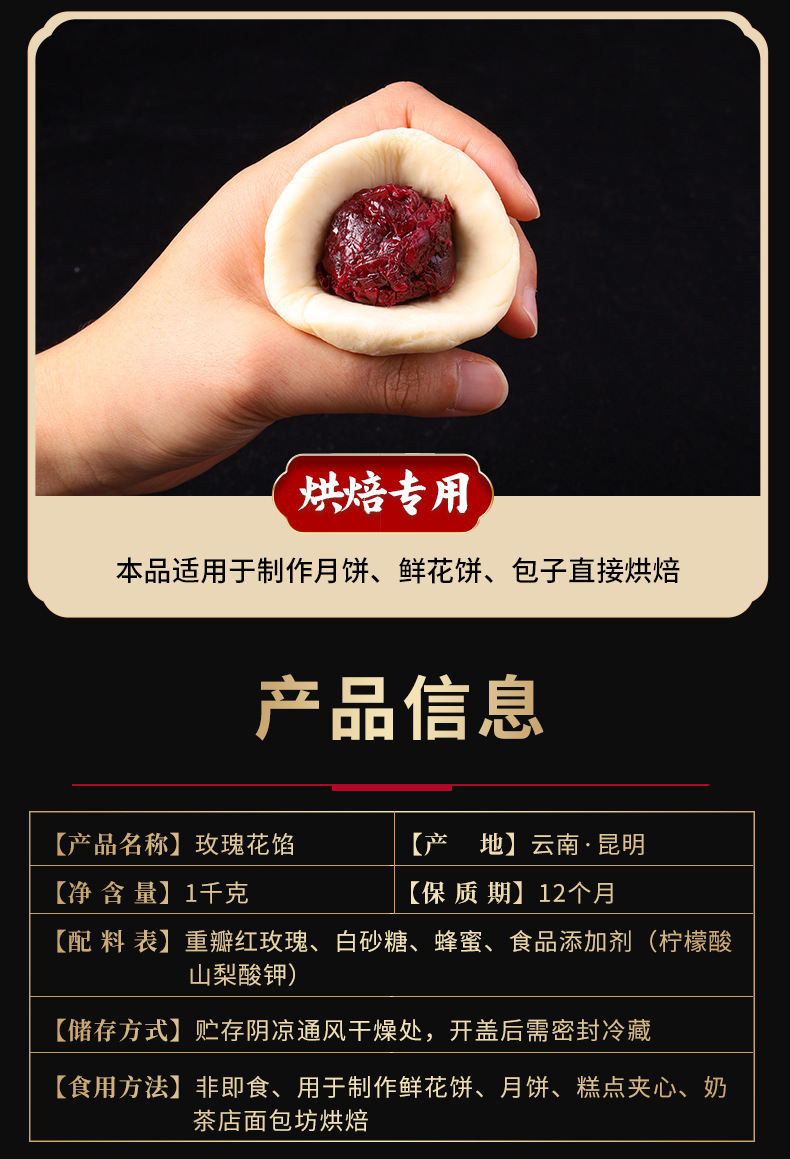 Начинка из розы Юннани, свежая розовая паста, цветочный пирог, начинка для лунного пирога, сырье для выпечки, оптовая продажа