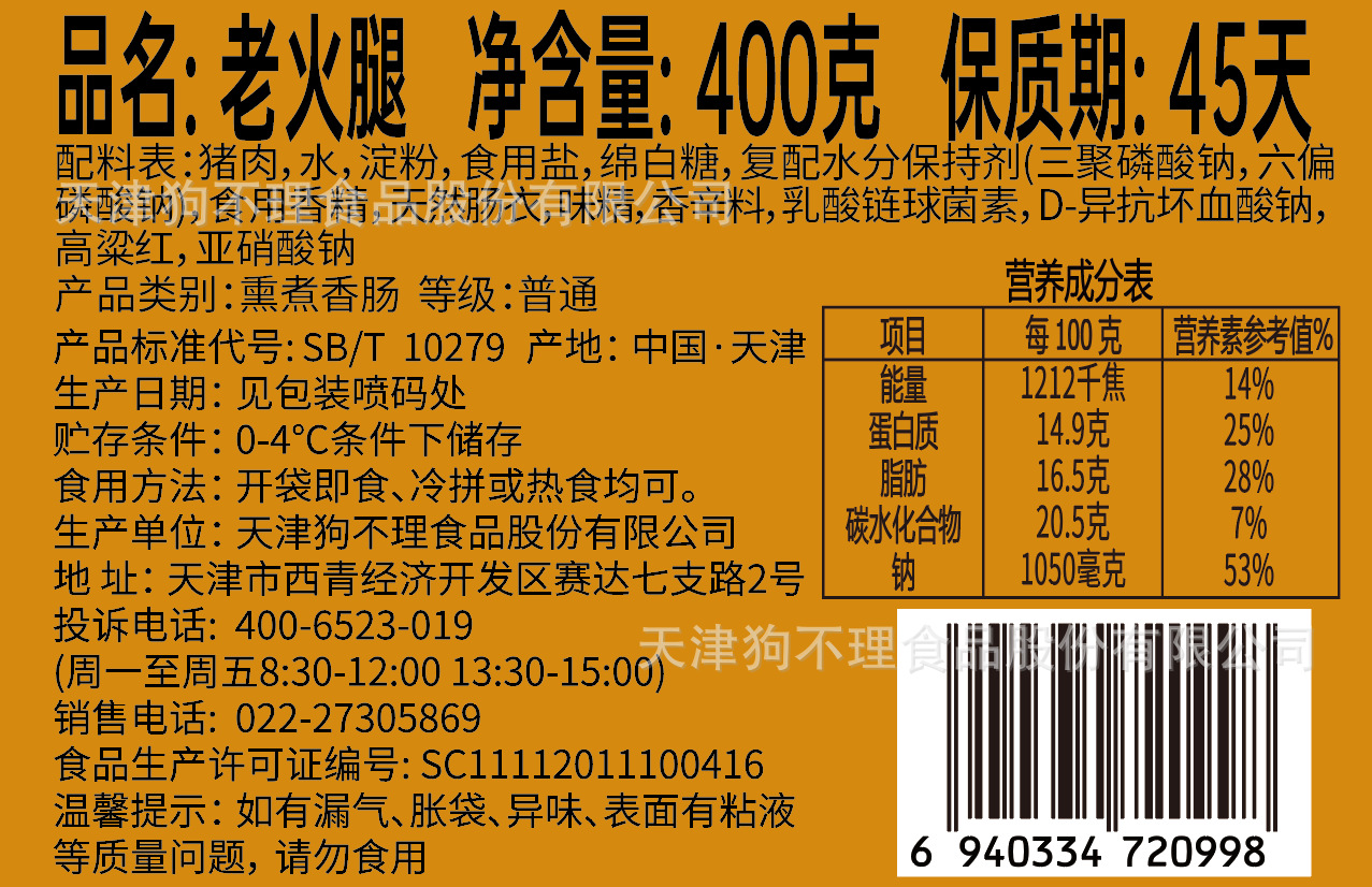 ![]() | 400g old ham*1 box | ¥25.4 / ≈ 307 ₽ | 100 | 6084081482177 | |