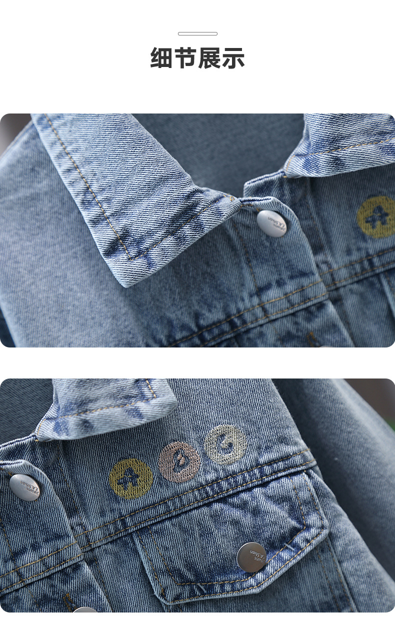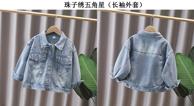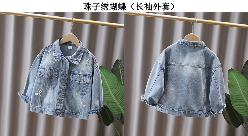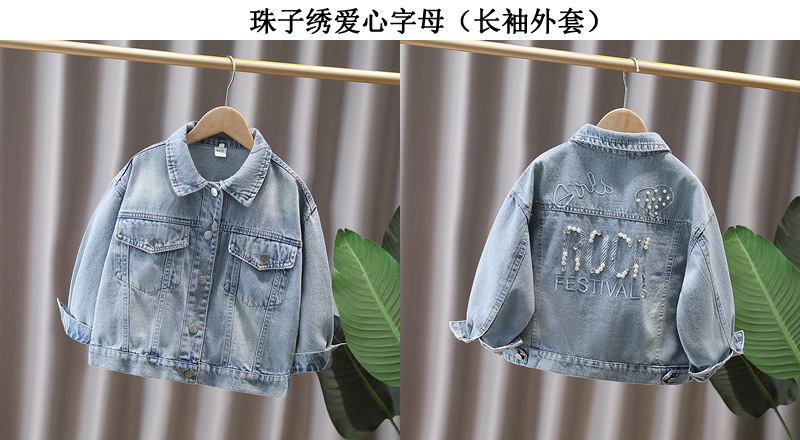 Джинсовое пальто для девочек в западном стиле, вышитый топ с длинным рукавом, новая весна и осень 2025, куртка для детей маленького и среднего размера