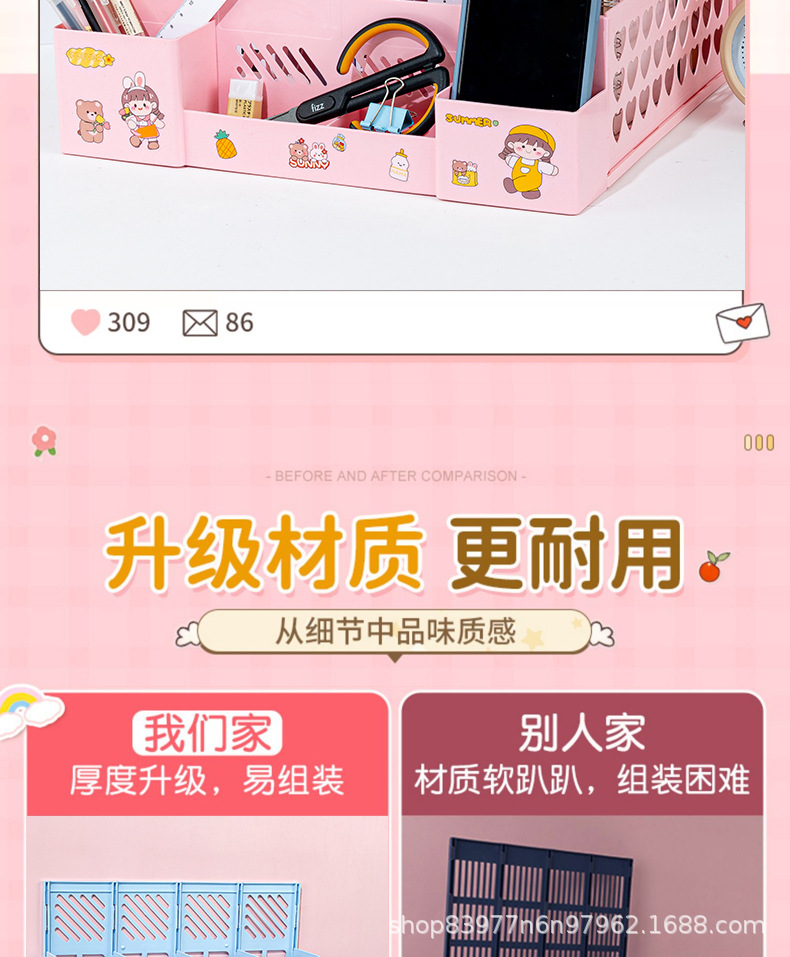 Настольный файловый органайзер с колонками, утолщенный, с подставкой для ручек, большой емкости