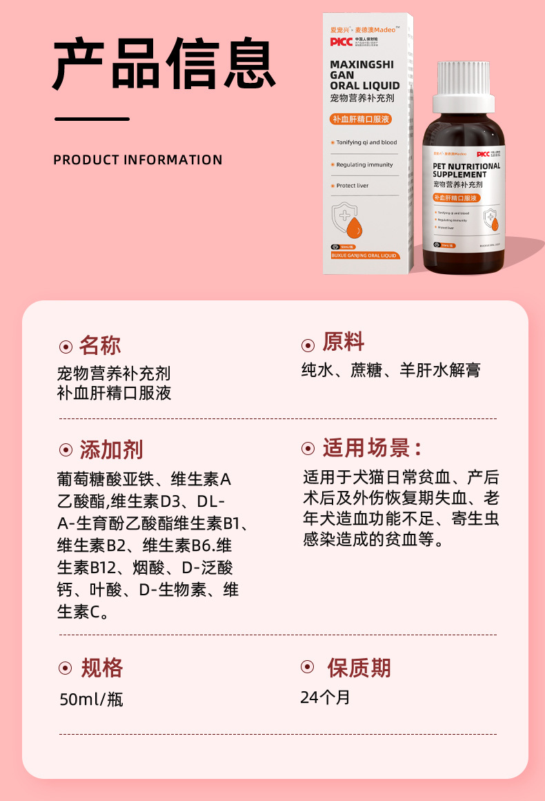 Эссенция для восстановления крови для кошек и собак после родов, защитная добавка для печени