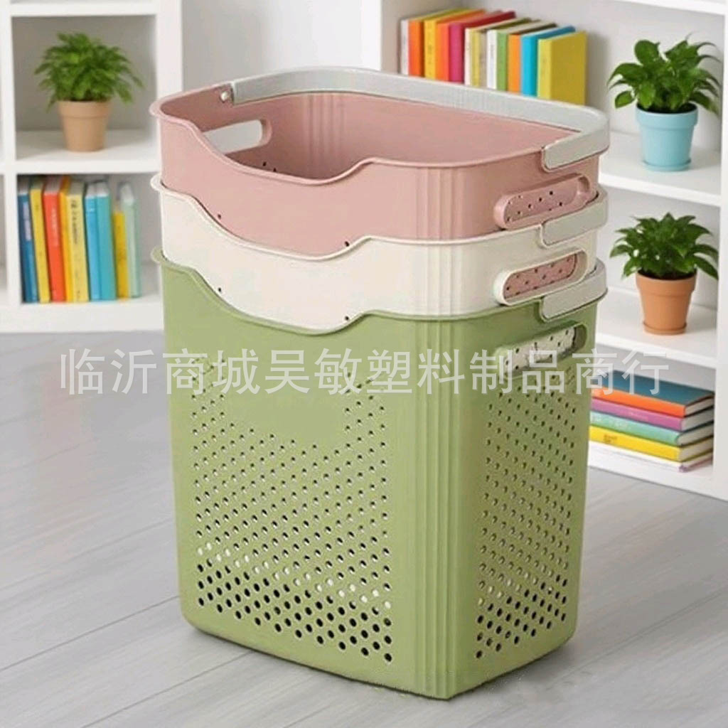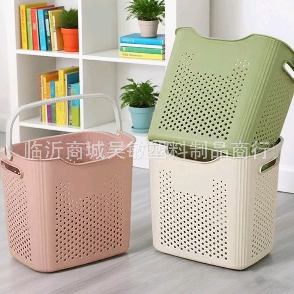 Японская большая ручная корзина для грязного белья пластиковая