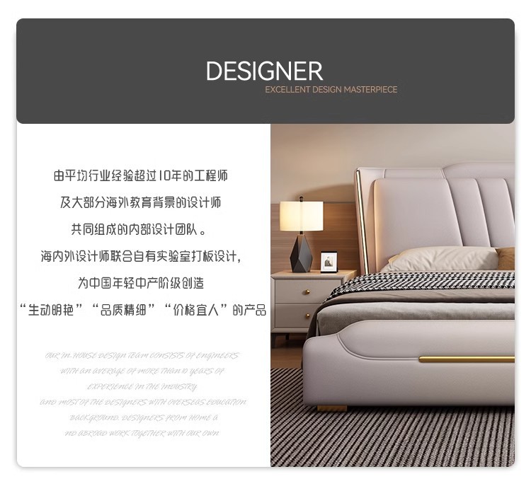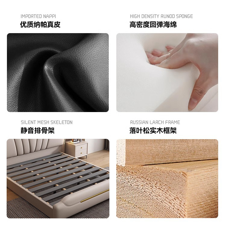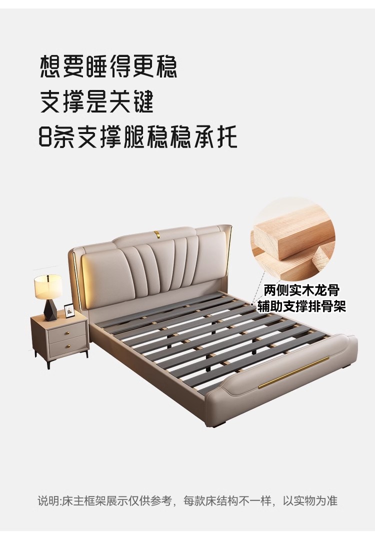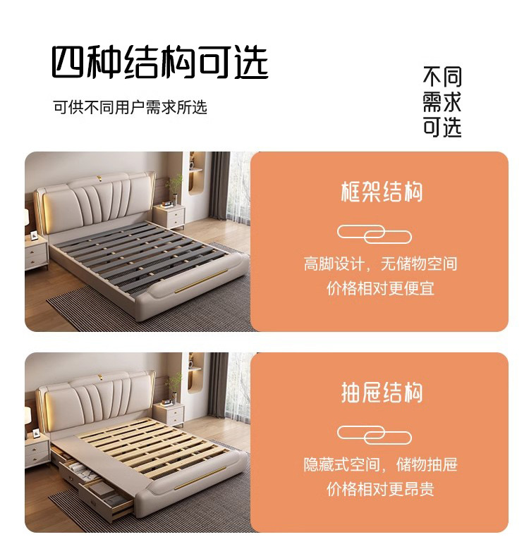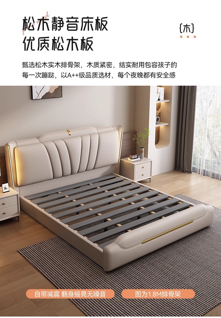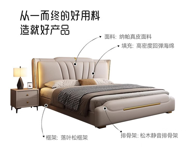 Итальянская легкая роскошная кожаная кровать, высококачественная, очень простая, для главной спальни, мягкая, двуспальная 1.8м, 1.5м, свадебная кровать с ночником