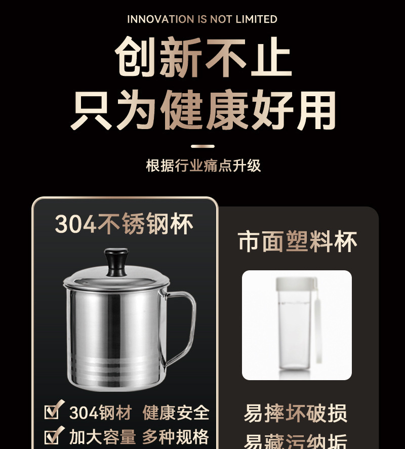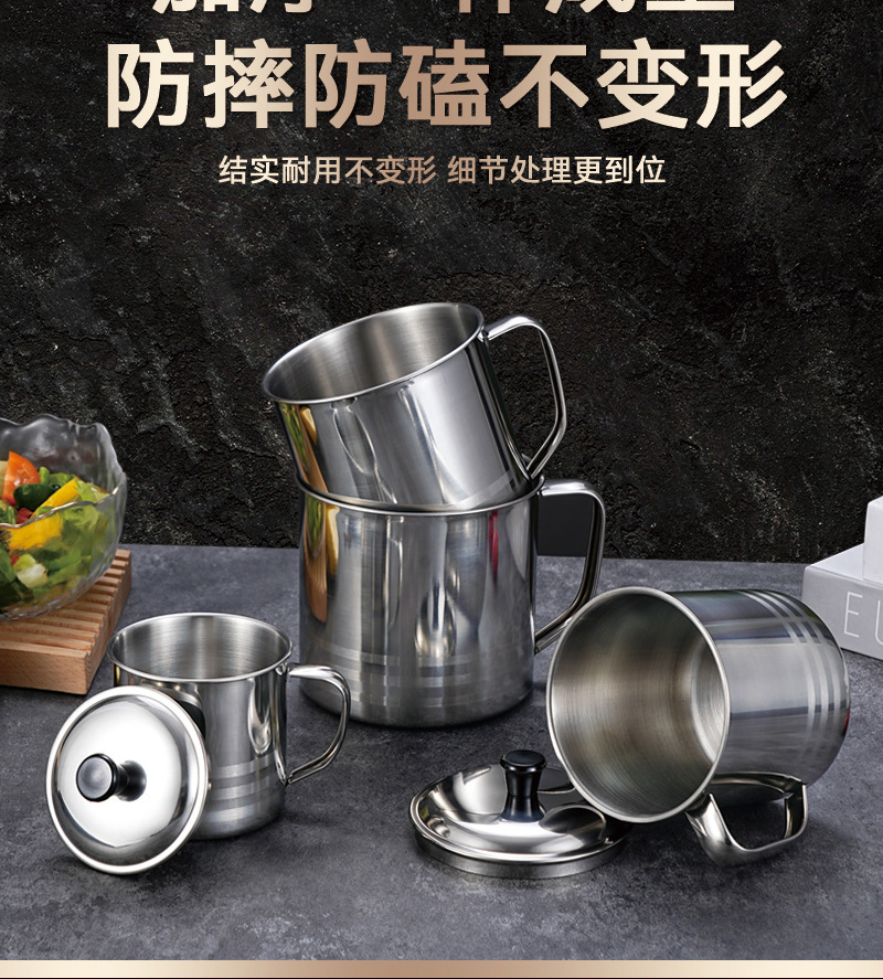 Оптовая продажа 304 нержавеющая сталь, домашний стакан для взрослых, утолщенный стакан с крышкой, стакан для воды для детского сада